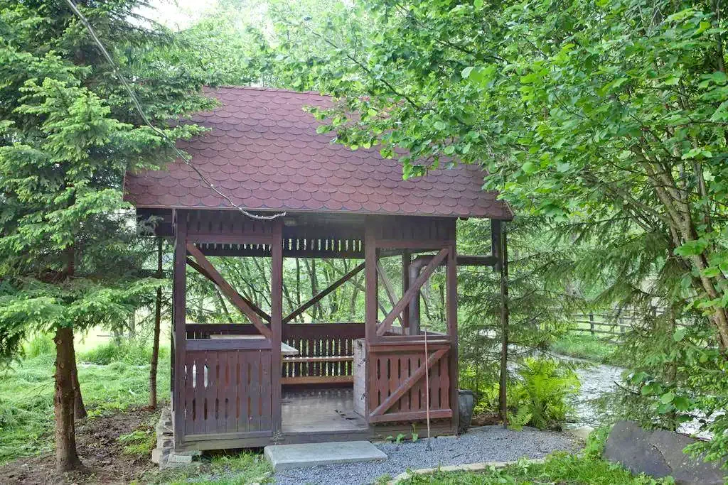 - În curte, chiar lângă pârâu, un foișor acoperit este locul perfect pentru a găti la grătar sau ceaun, oferind o experiență culinară autentică în mijlocul naturii.