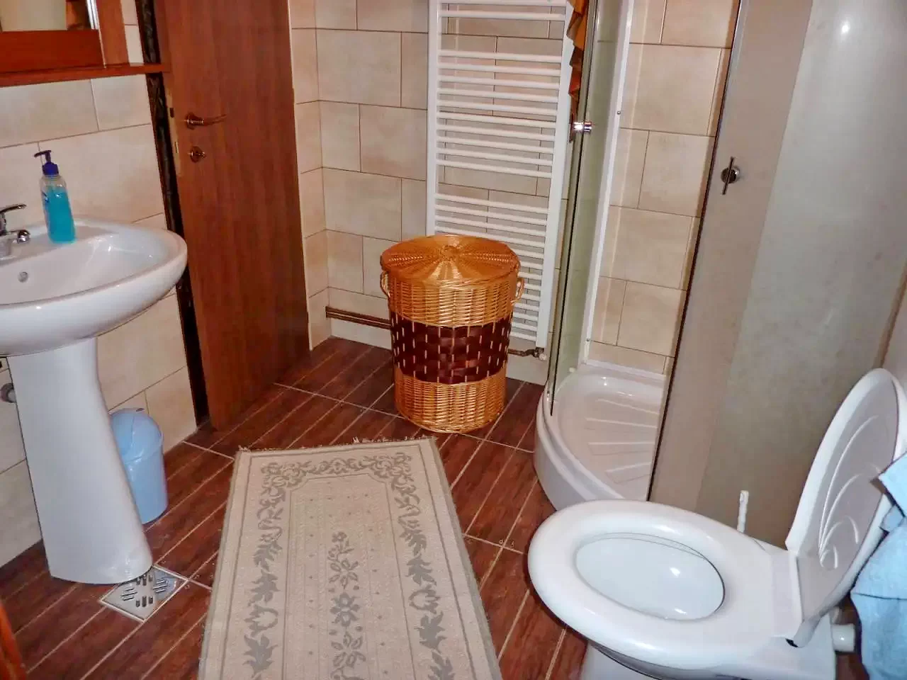 Parter: 1 cameră cu 1 pat matrimonial (2 persoane); living cu pat extensibil (2 persoane, pótágy)