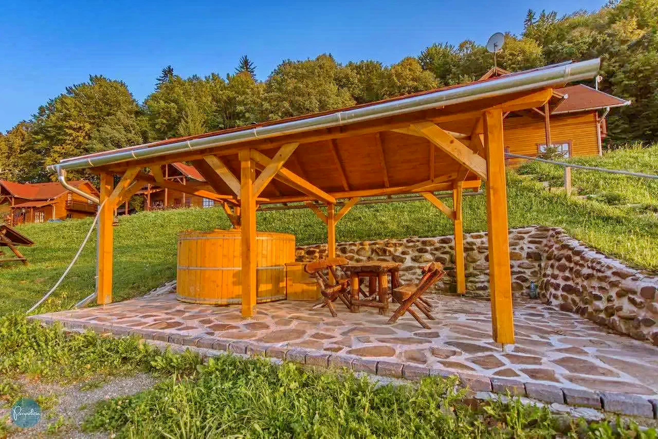 Echipamente de agrement: Ciubăr secuiesc (jacuzzi cu apă caldă, 6–8 persoane), grătar, loc de foc, ceaun.