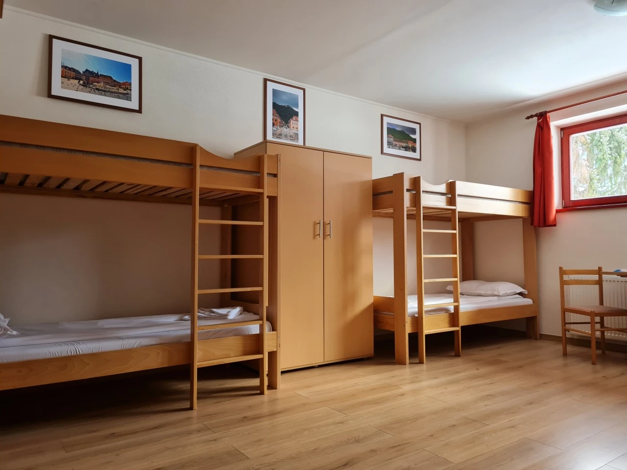 Camere cu opt paturi: Cu paturi supraetajate și băi comune, ideale pentru tabere de copii.