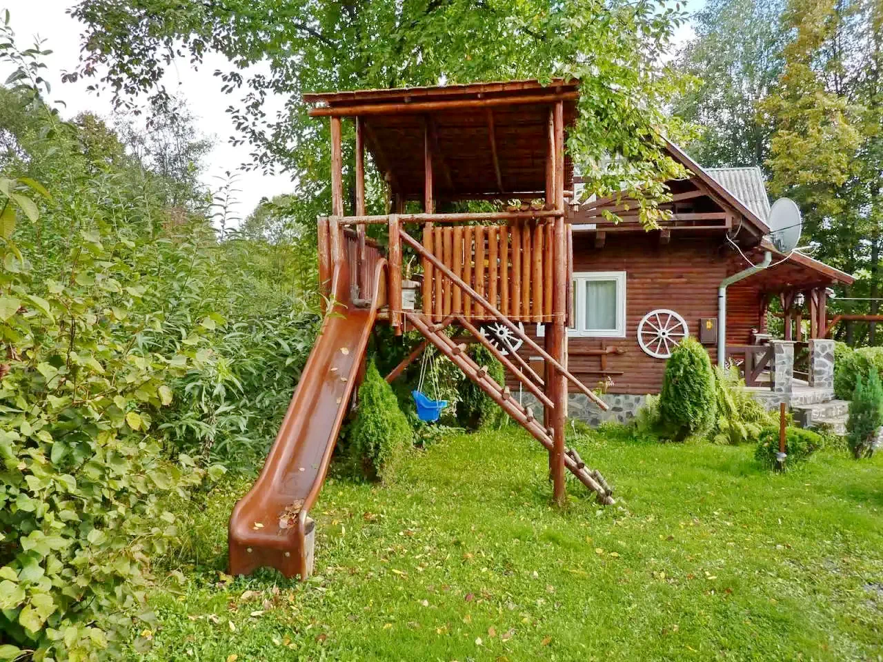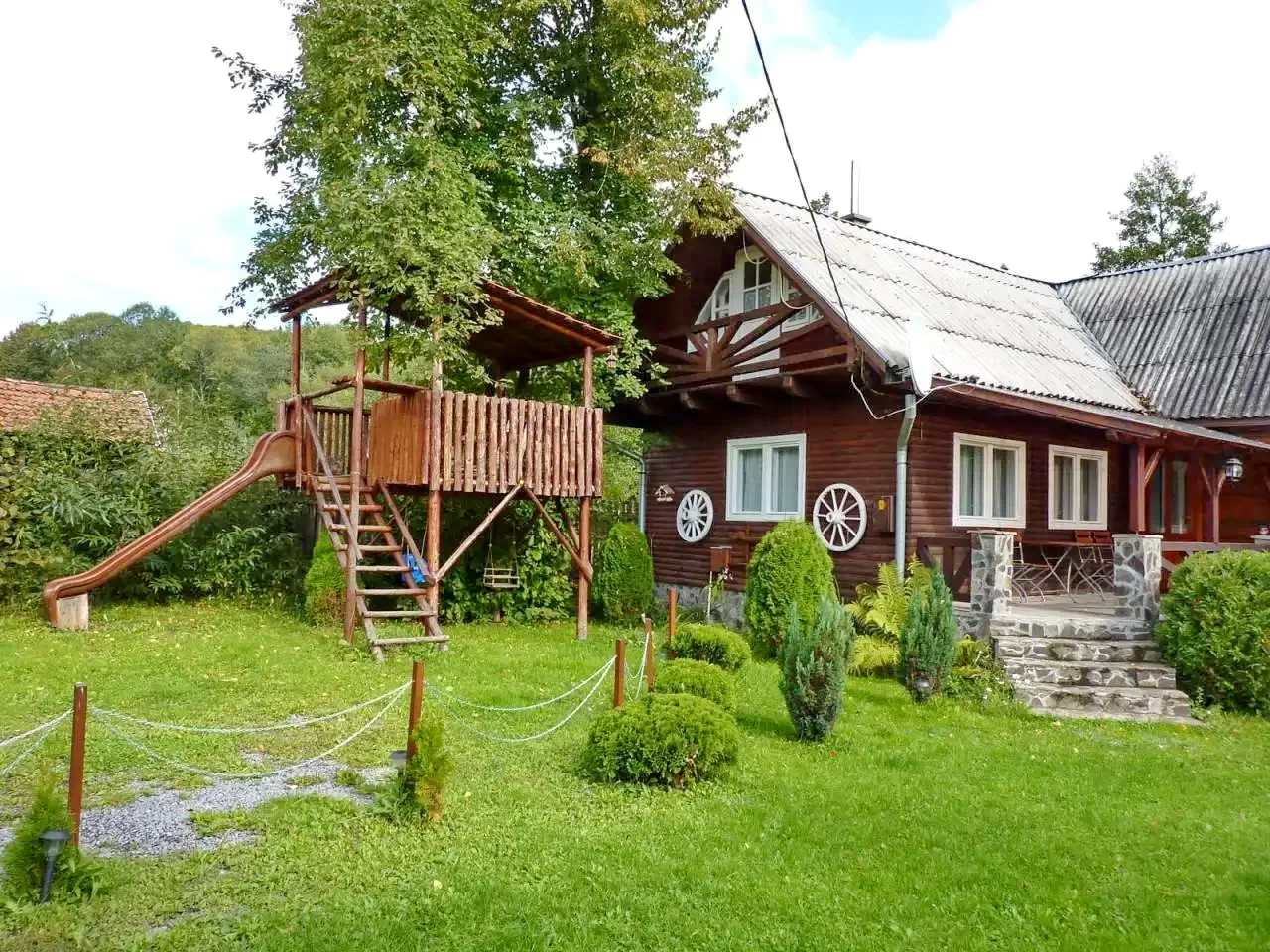 Curtea de 600 m² a casei de vacanță oferă diverse oportunități de recreere: