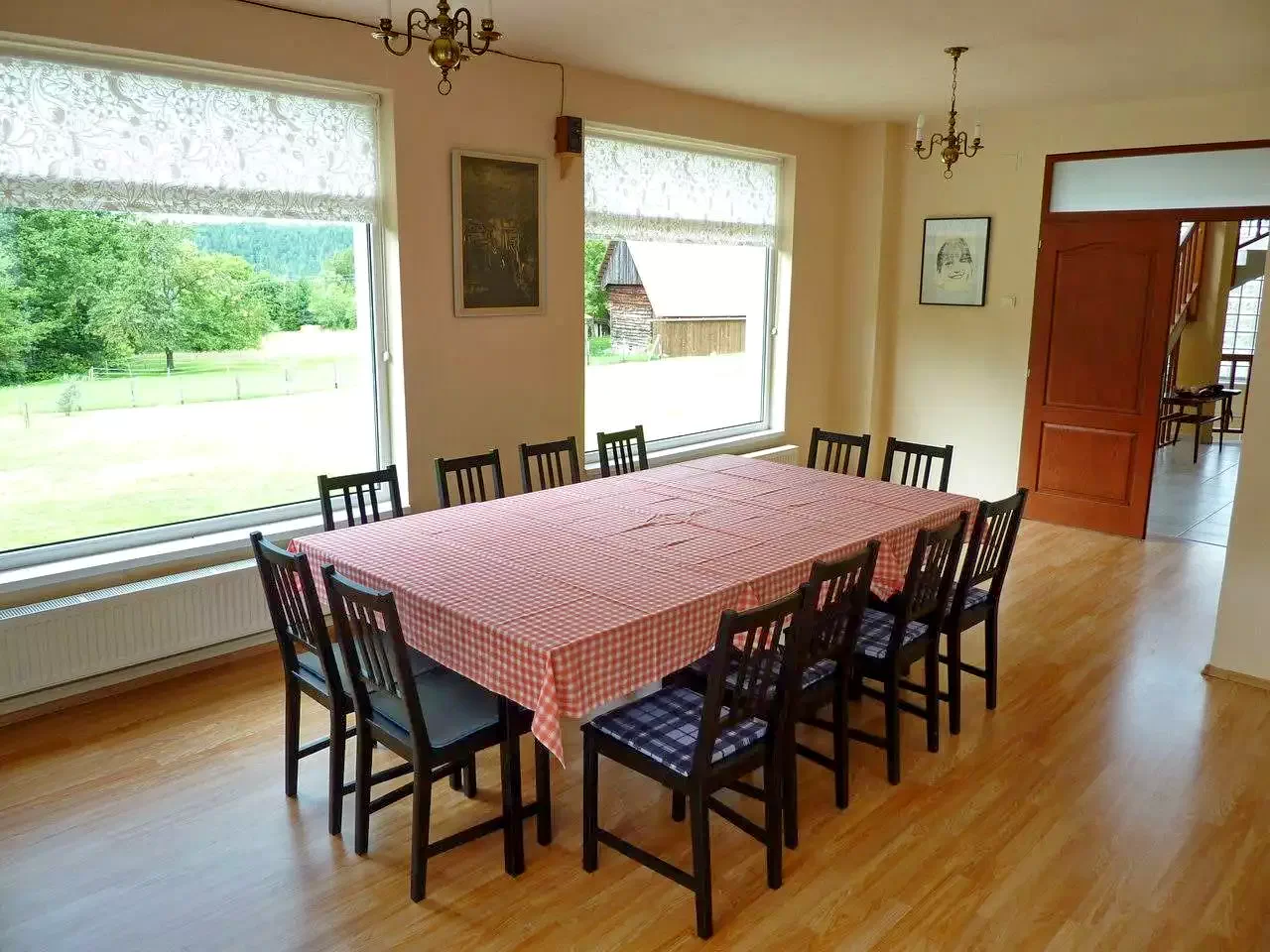 - La parter se găsesc un living, o sală de mese, o bucătărie complet utilată, un grup sanitar separat și două camere, fiecare cu 3 paturi de o persoană.