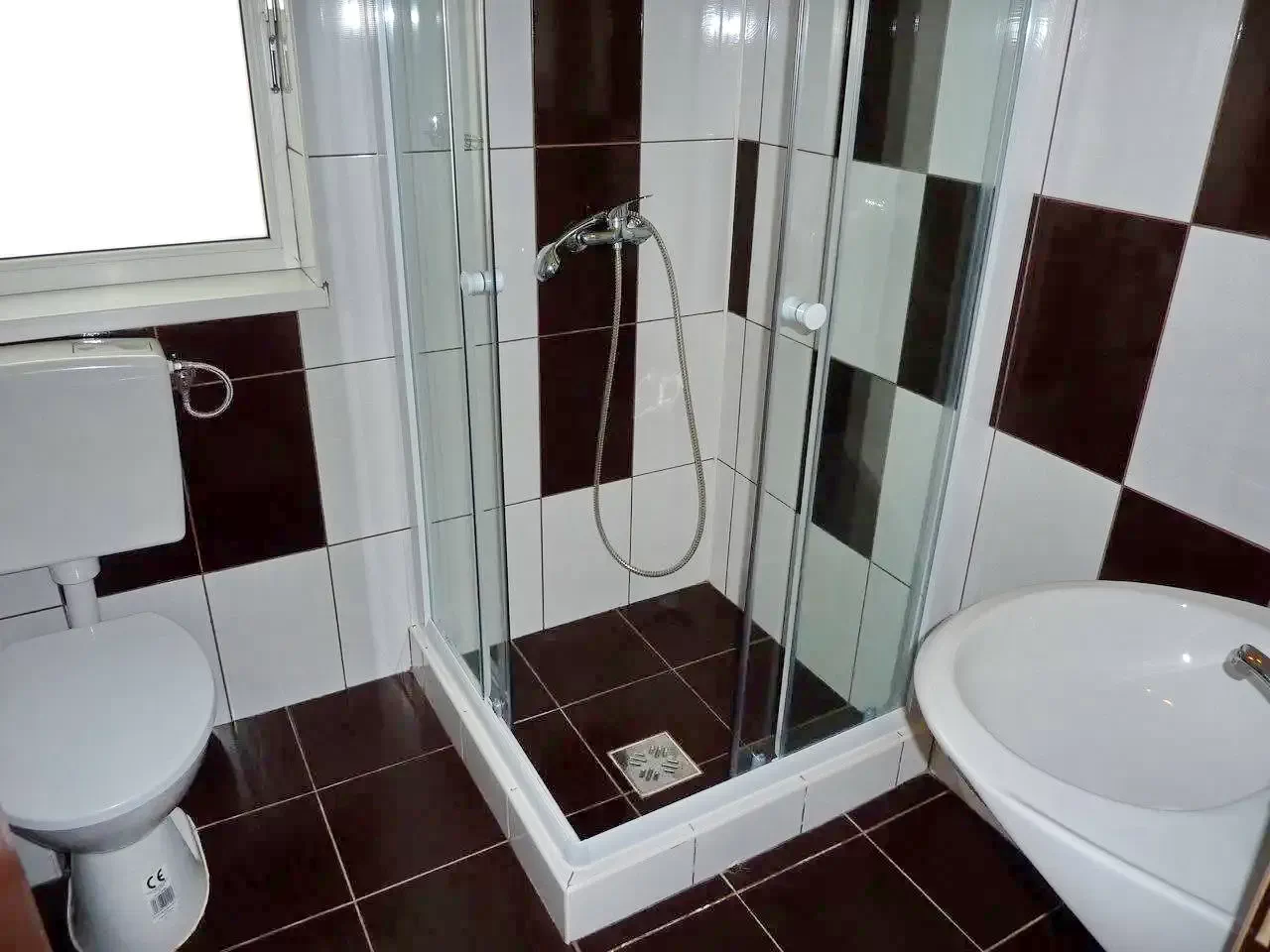Băi: Fiecare cameră cu baie proprie (duș, WC, chiuvetă), uscător de păr, prosoape de mâini și de baie.