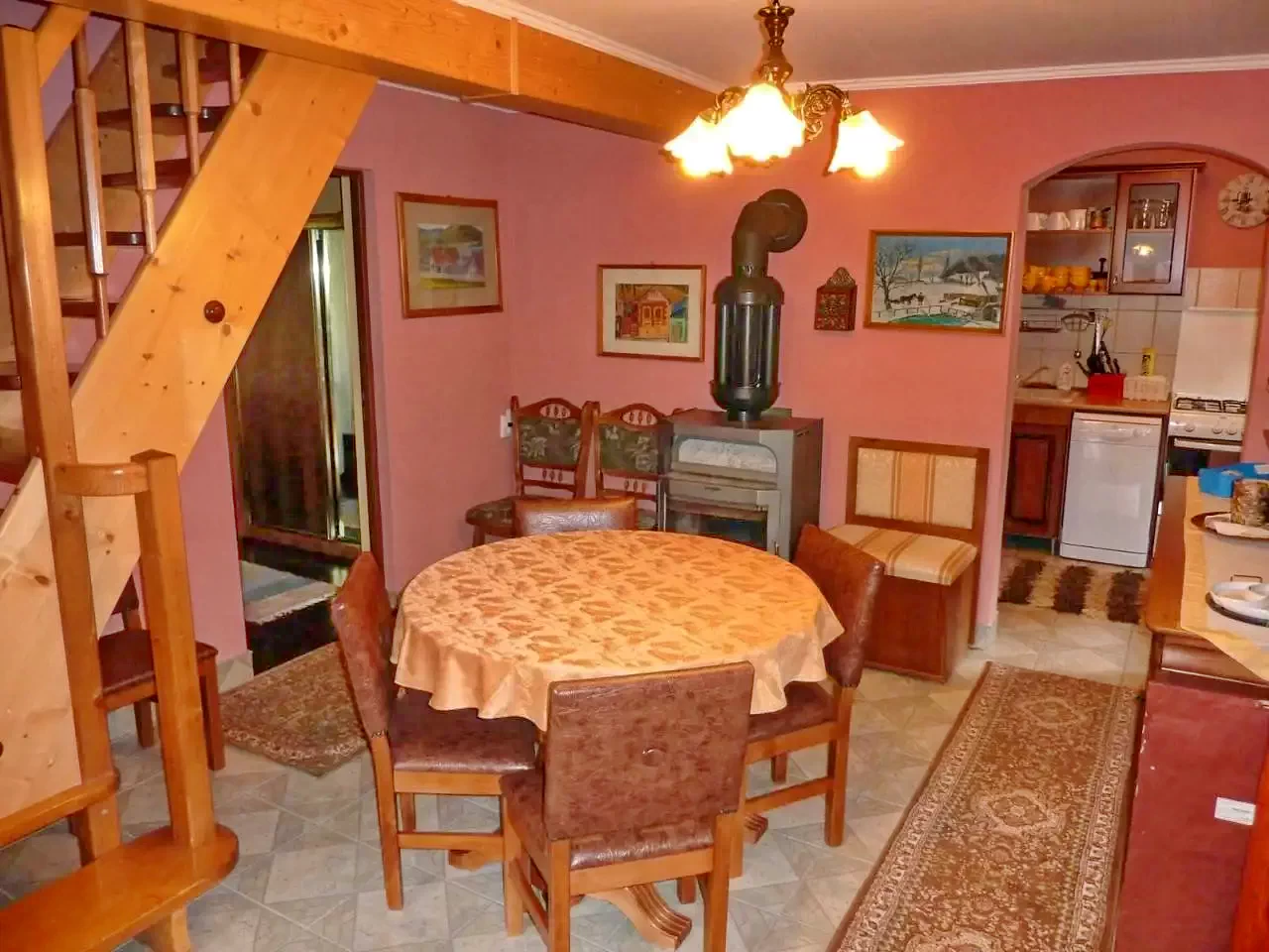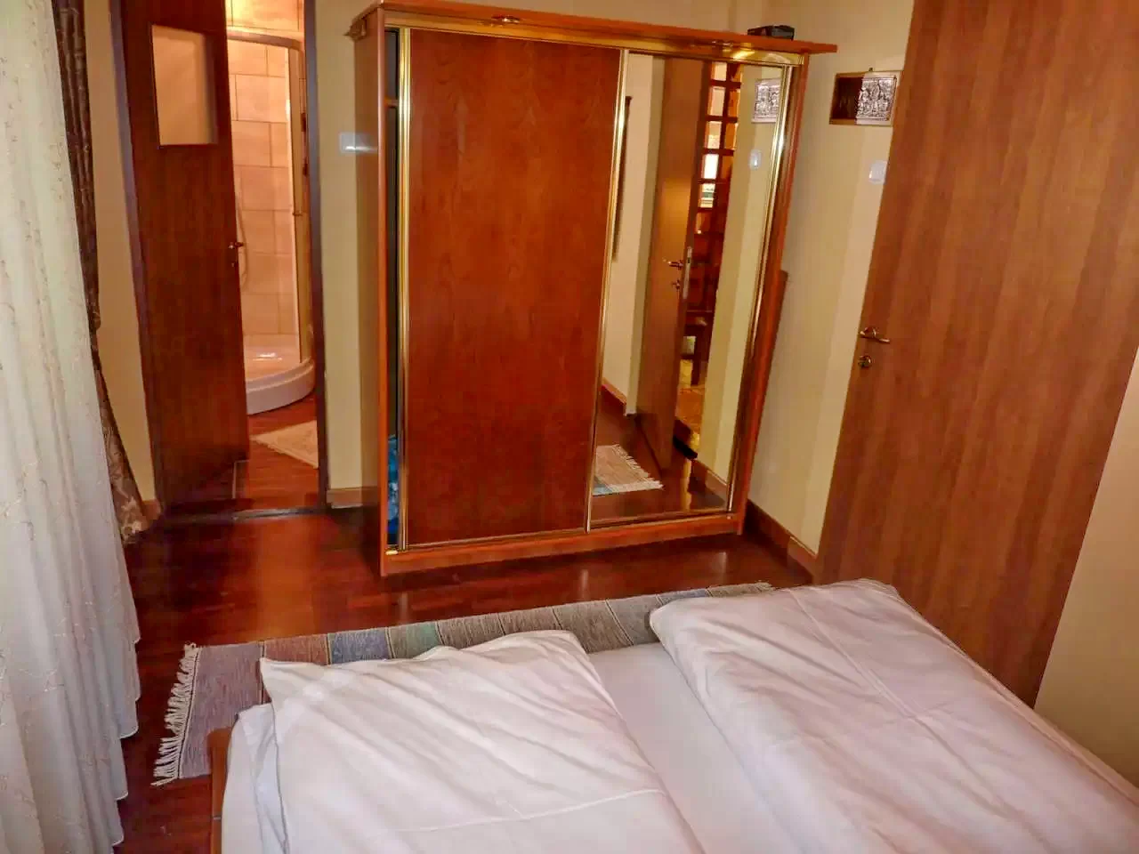 Parter: 1 cameră cu 1 pat matrimonial (2 persoane); living cu pat extensibil (2 persoane, pótágy)