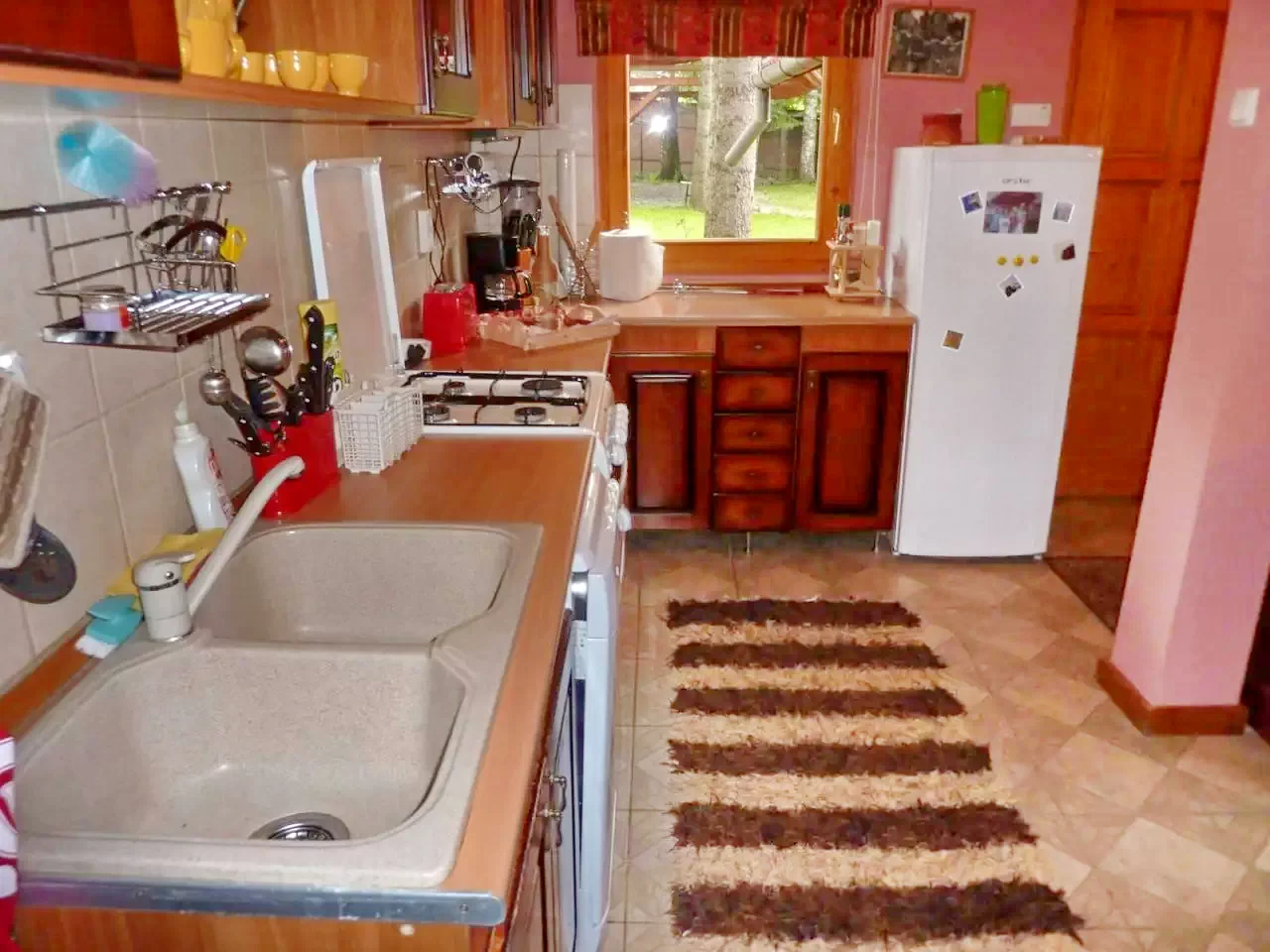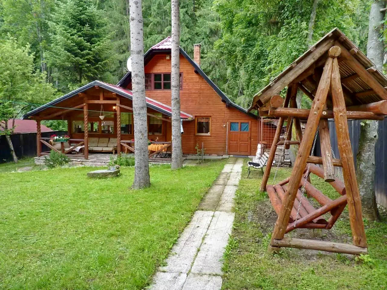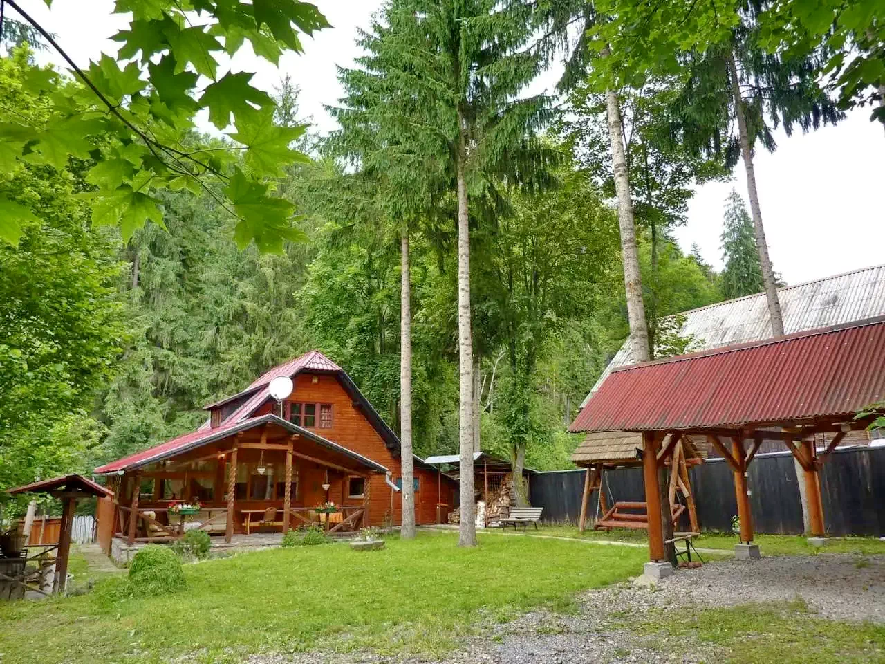 - WiFi-ul, acoperirea mobilă și televizorul cu antenă parabolică adaugă confort modern, iar canisa separată permite cazarea câinilor în curte.