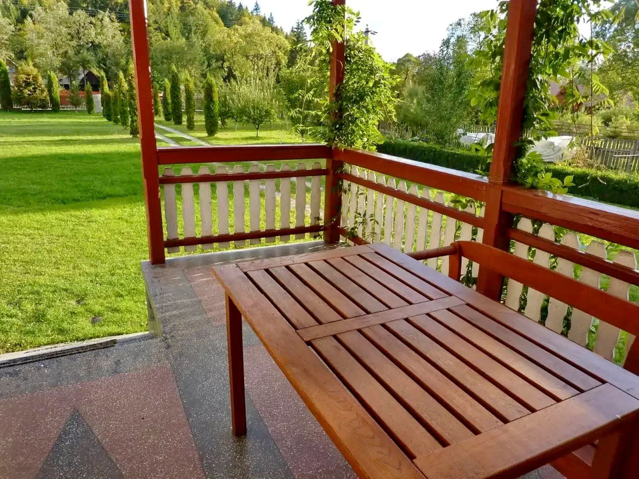 Curte (2500 m²): Foișor acoperit, terasă, leagăn, masă de ping-pong.
