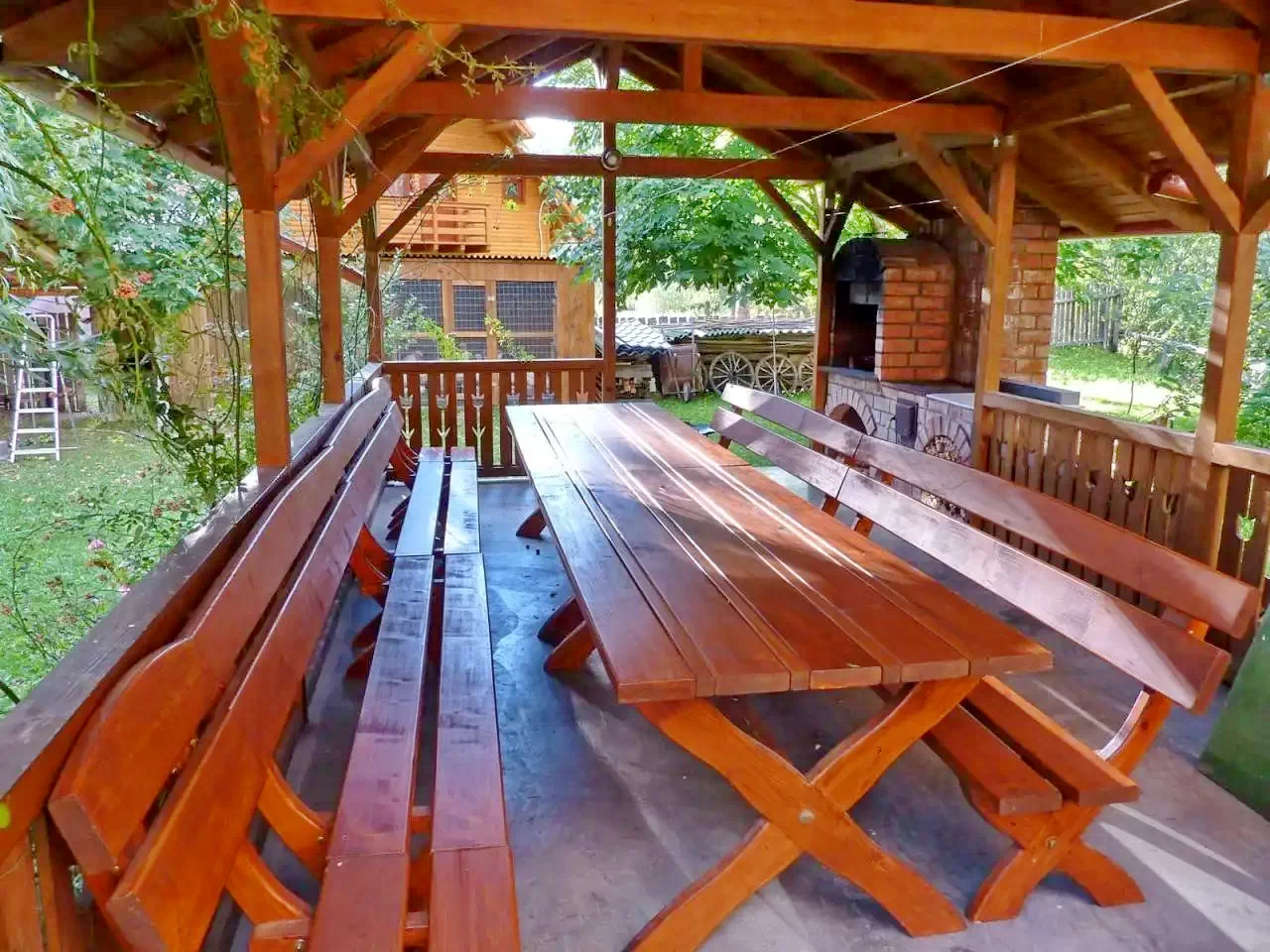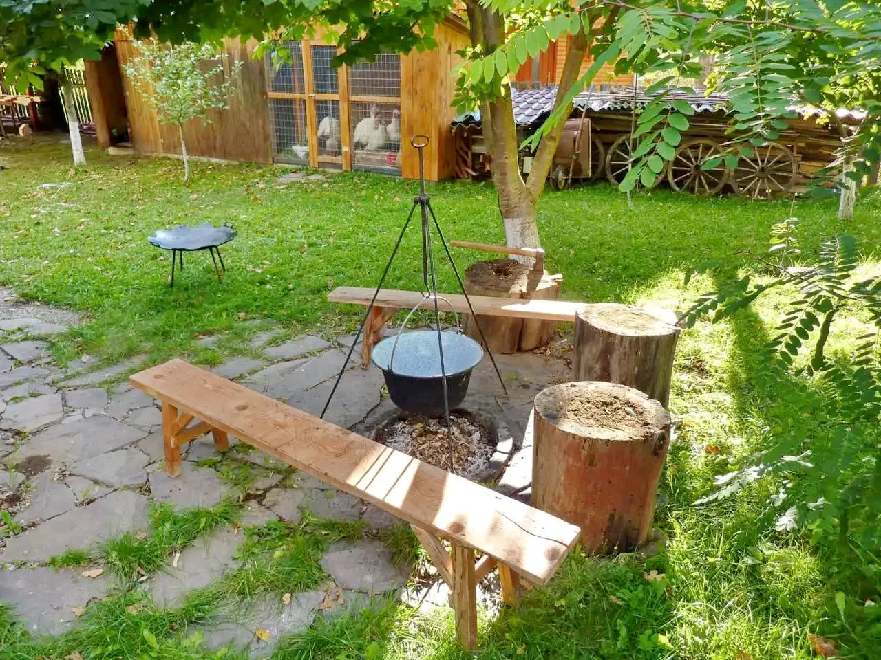 - Pentru gătit în aer liber, foișorul acoperit și terasa oferă spații excelente pentru grătar, gătit la ceaun sau pe disc, aducând la viață aromele secuiești.