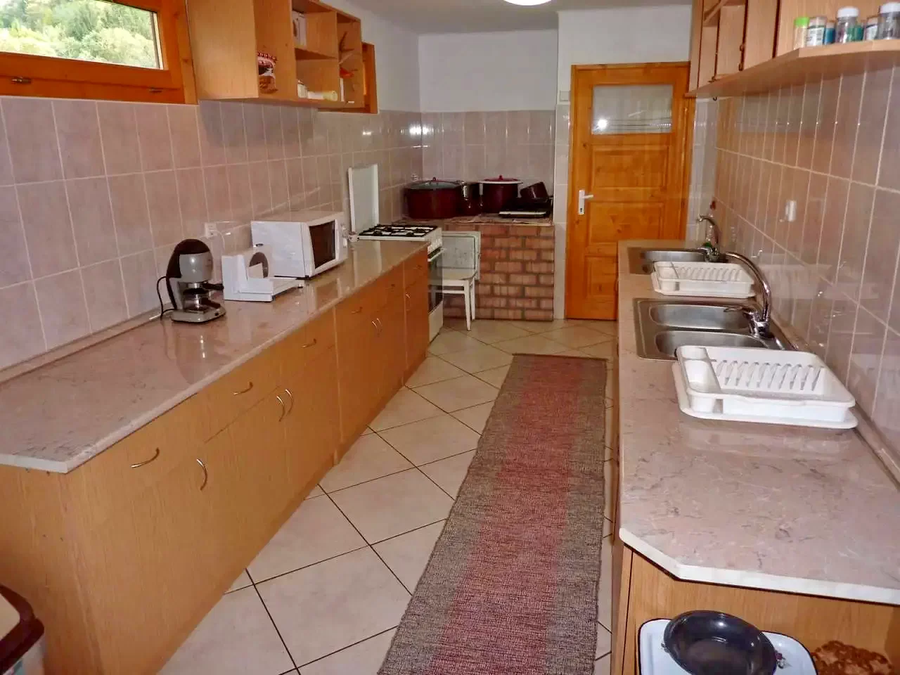 Casa dispune de o bucătărie modernă, complet utilată, dotată cu aragaz pe gaz, frigider, cuptor cu microunde, prăjitor de pâine, filtru de cafea, fierbător de ceai, vase și tacâmuri, perfectă pentru prepararea meselor în regim propriu.