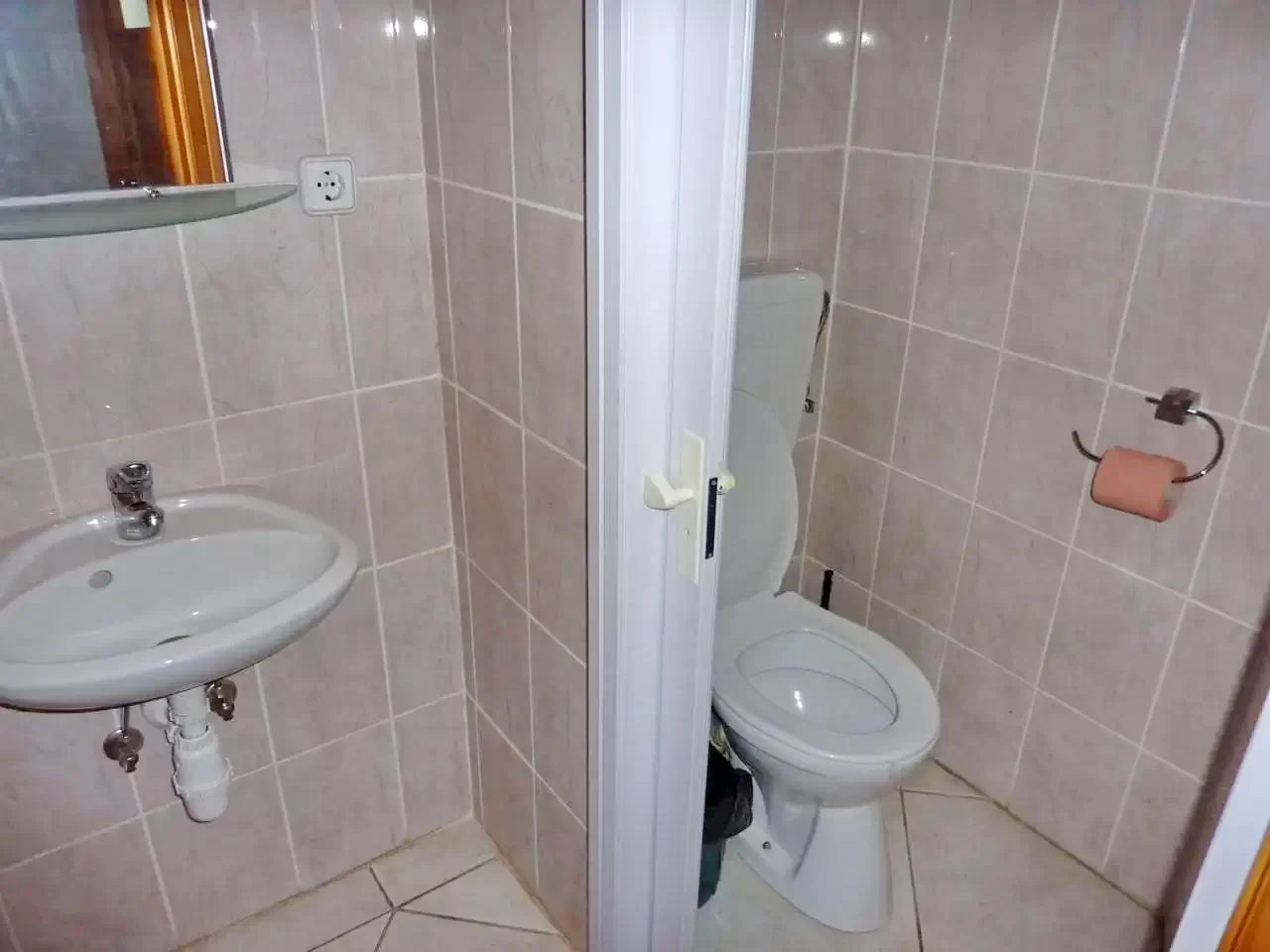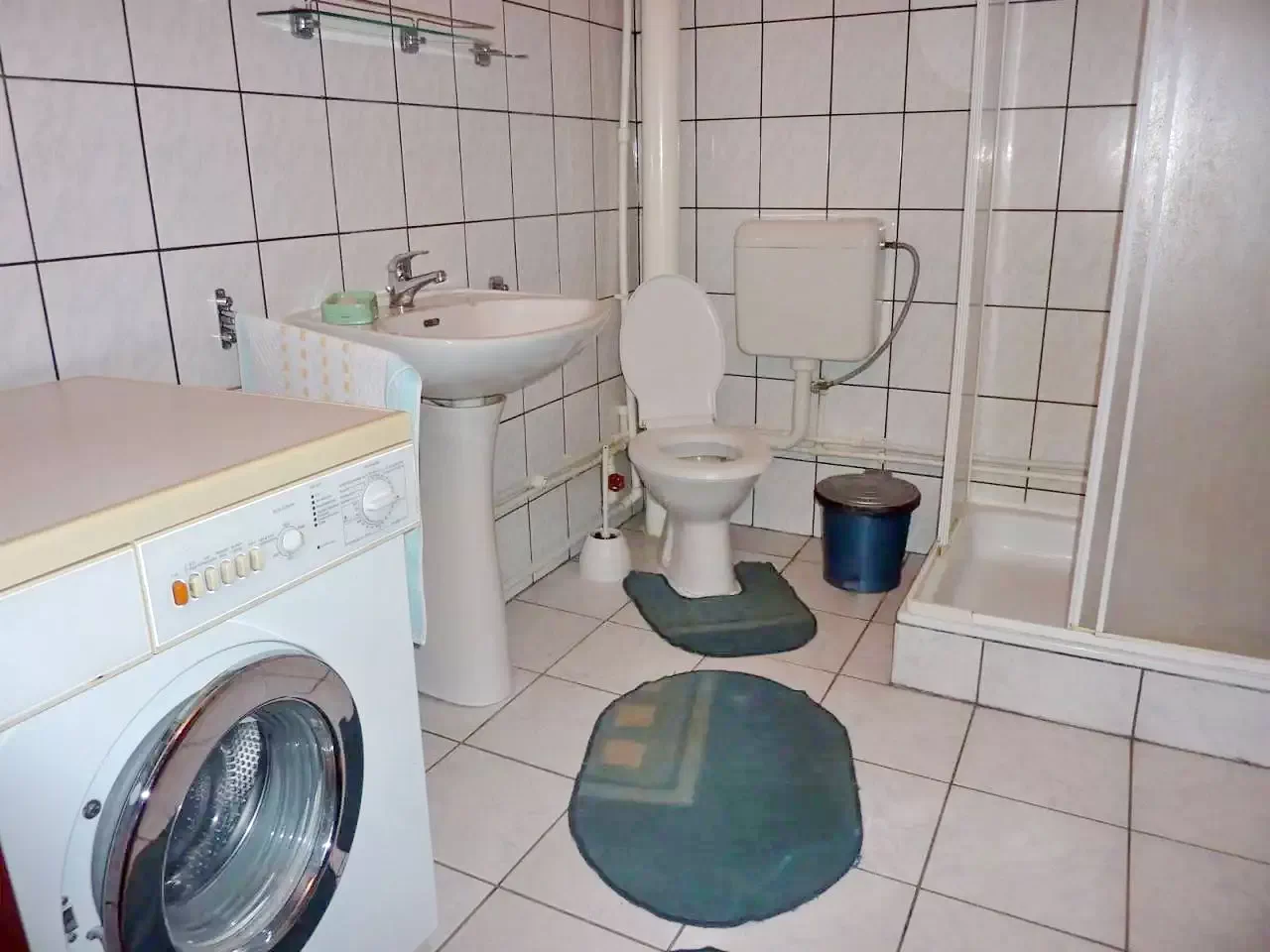 Parter: Living, sala de mese, bucătărie, 1 baie (duș, WC, chiuvetă), 2 camere cu baie proprie.