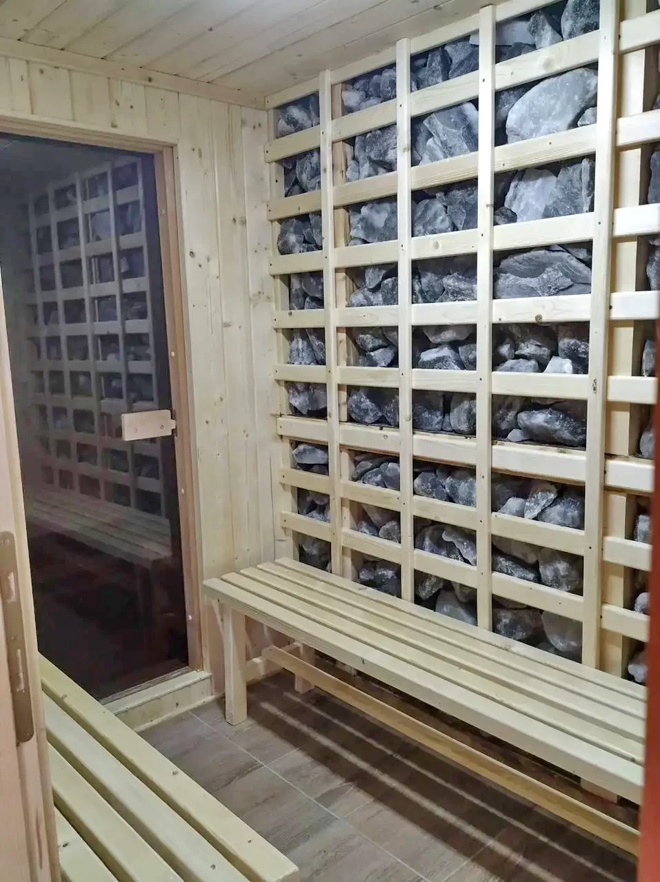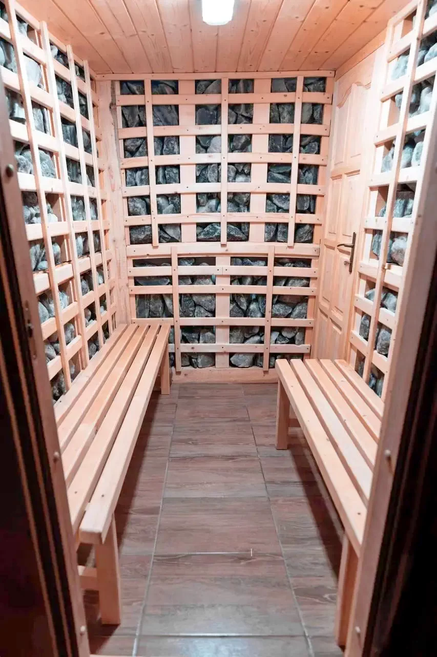 - Dispune de grădină și curte amenajată, ciubar cu apa calda, sauna, camera salina, filegorie, un cuptor, facilitați de grătar, ceaun, precum teren de tenis și parcare închisă in curtea pensiunii.