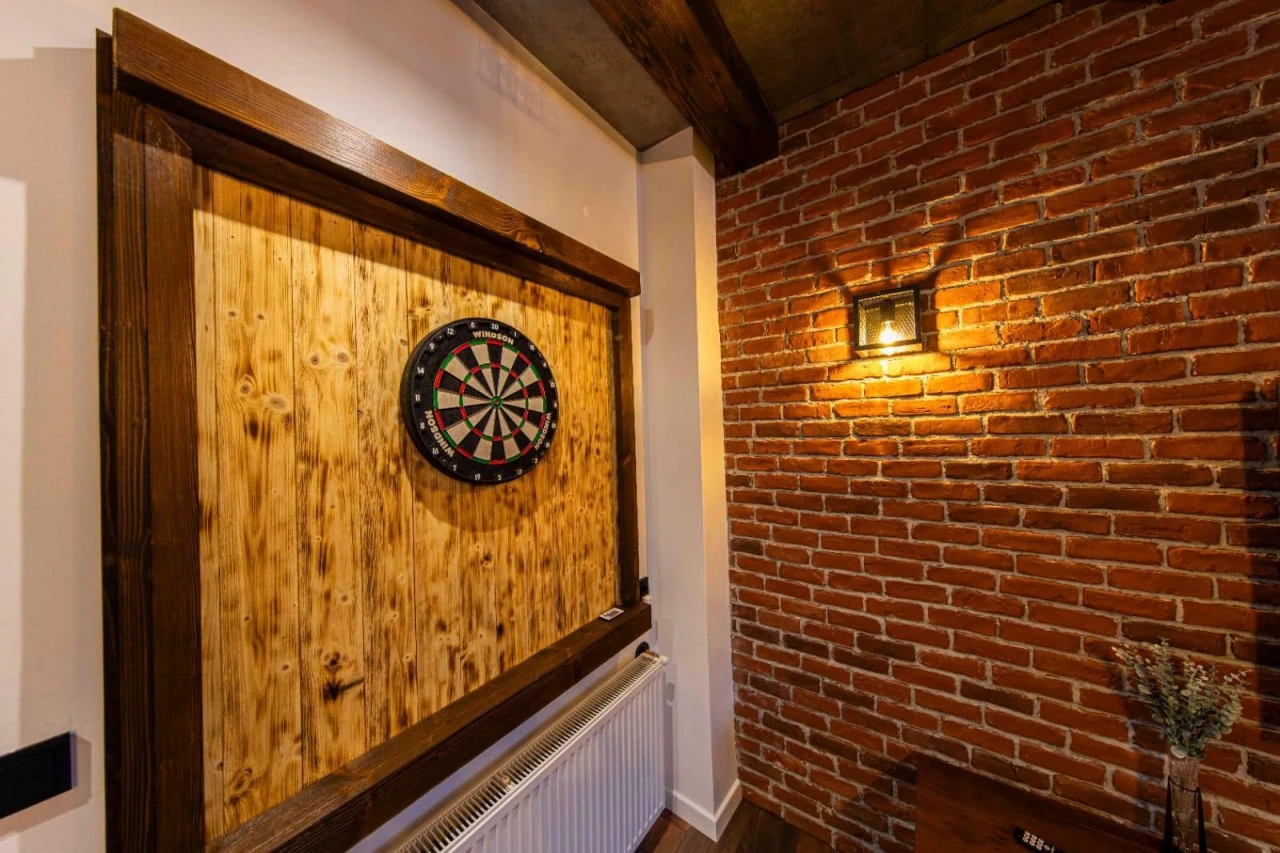 - Cameră de joacă interioară și salon cu mese pentru jocuri de societate