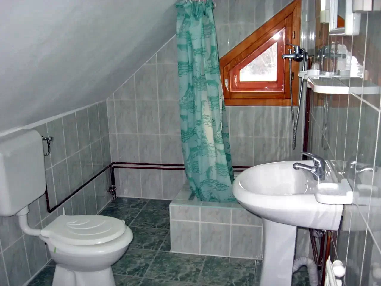 - Tot la etaj (în mansardă) se află un mic salon cu o masă și scaune, de unde se deschid a treia și a patra cameră, ambele având un pat matrimonial. Cele două camere au o baie comună cu duș, toaletă și chiuvetă.