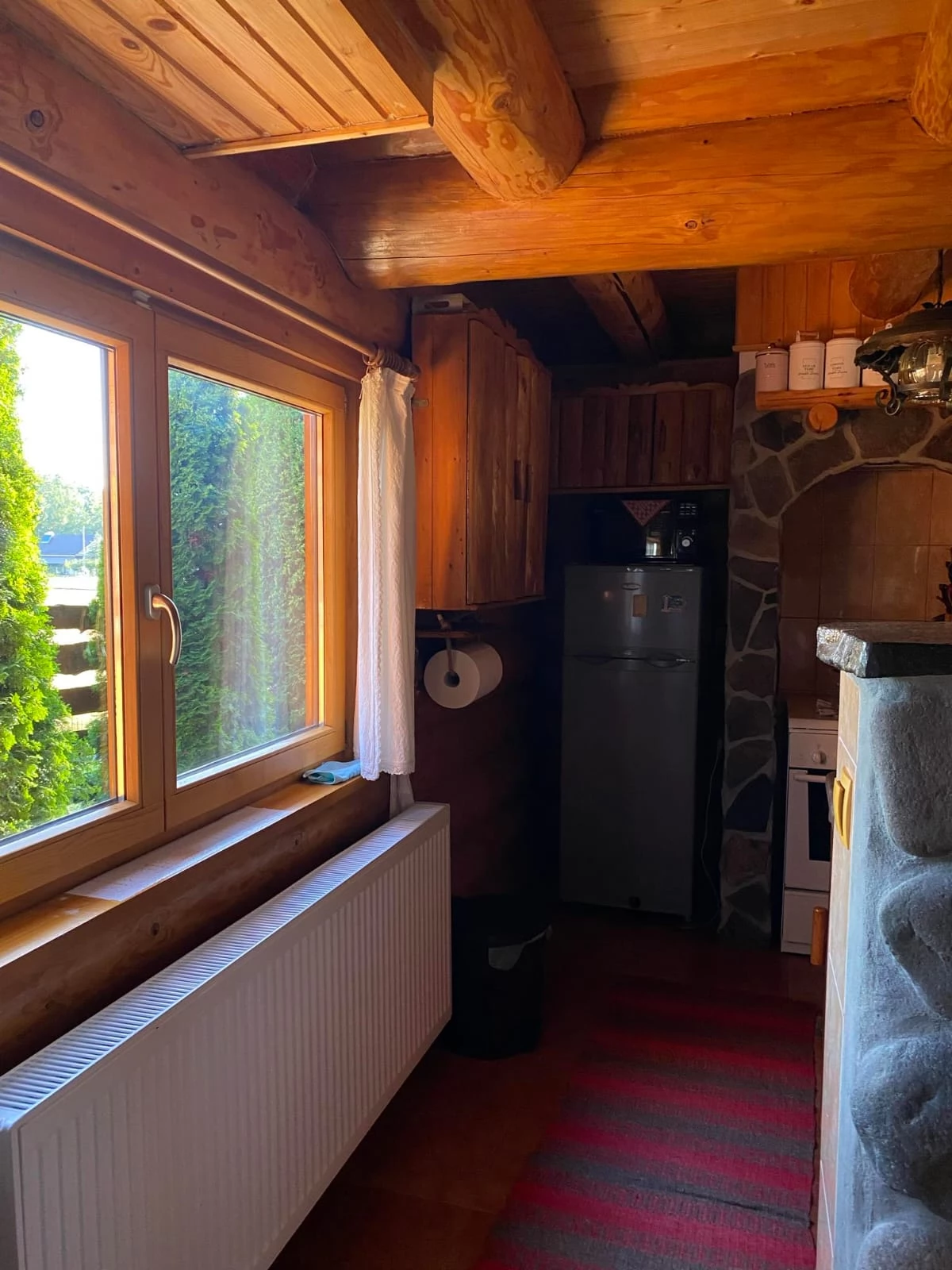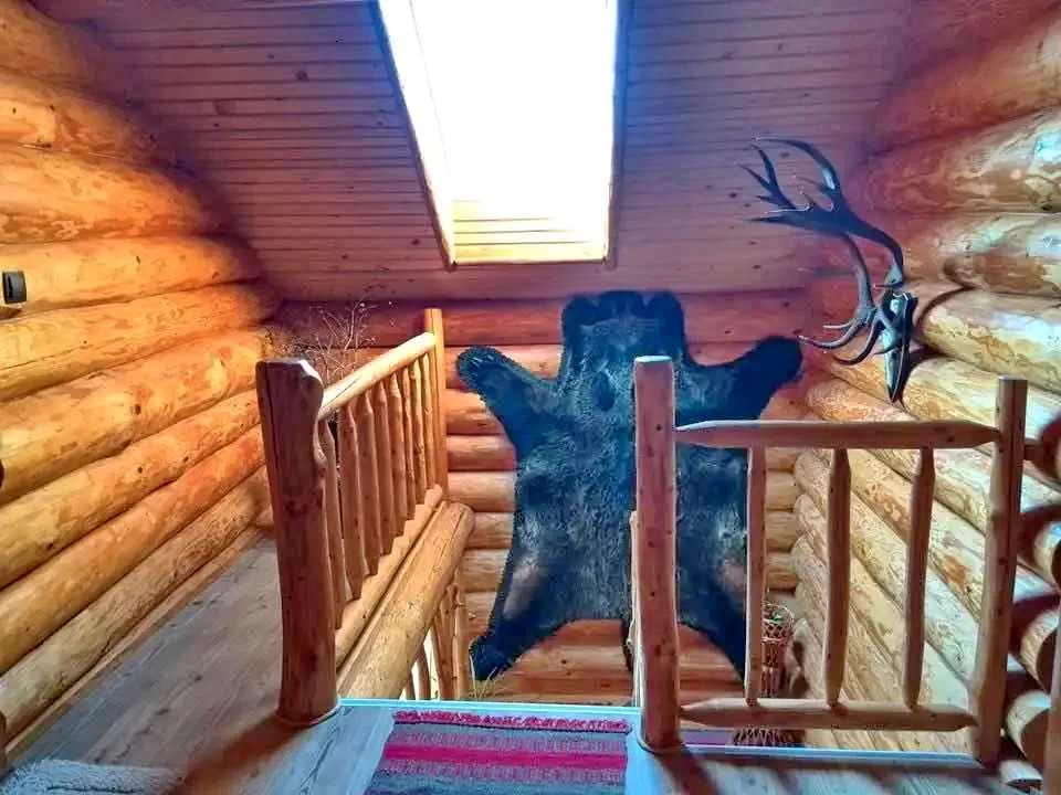 - Designul interior al casei din bușteni se potrivește cu exteriorul: paturile, dulapurile și mesele sunt toate realizate din bușteni, de asemenea lucrați manual.