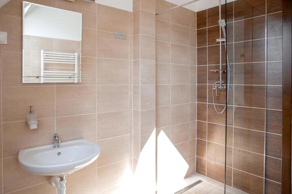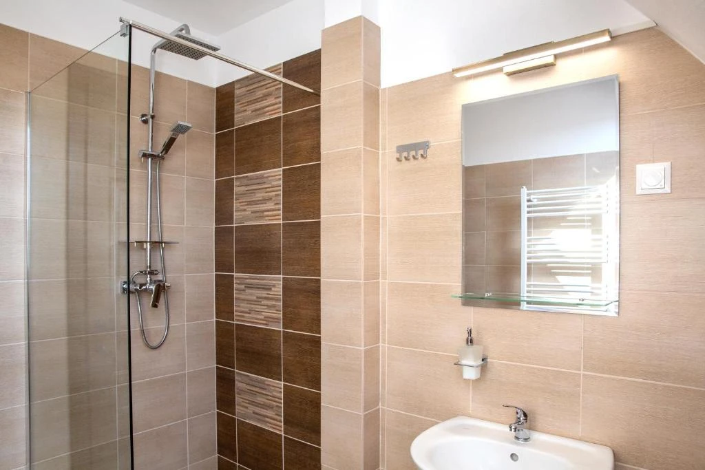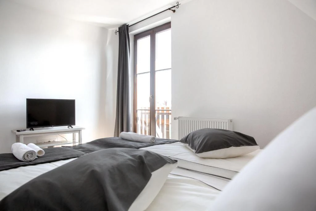 Apartamentele sunt compuse din două camere separate, baie proprie și frigider;