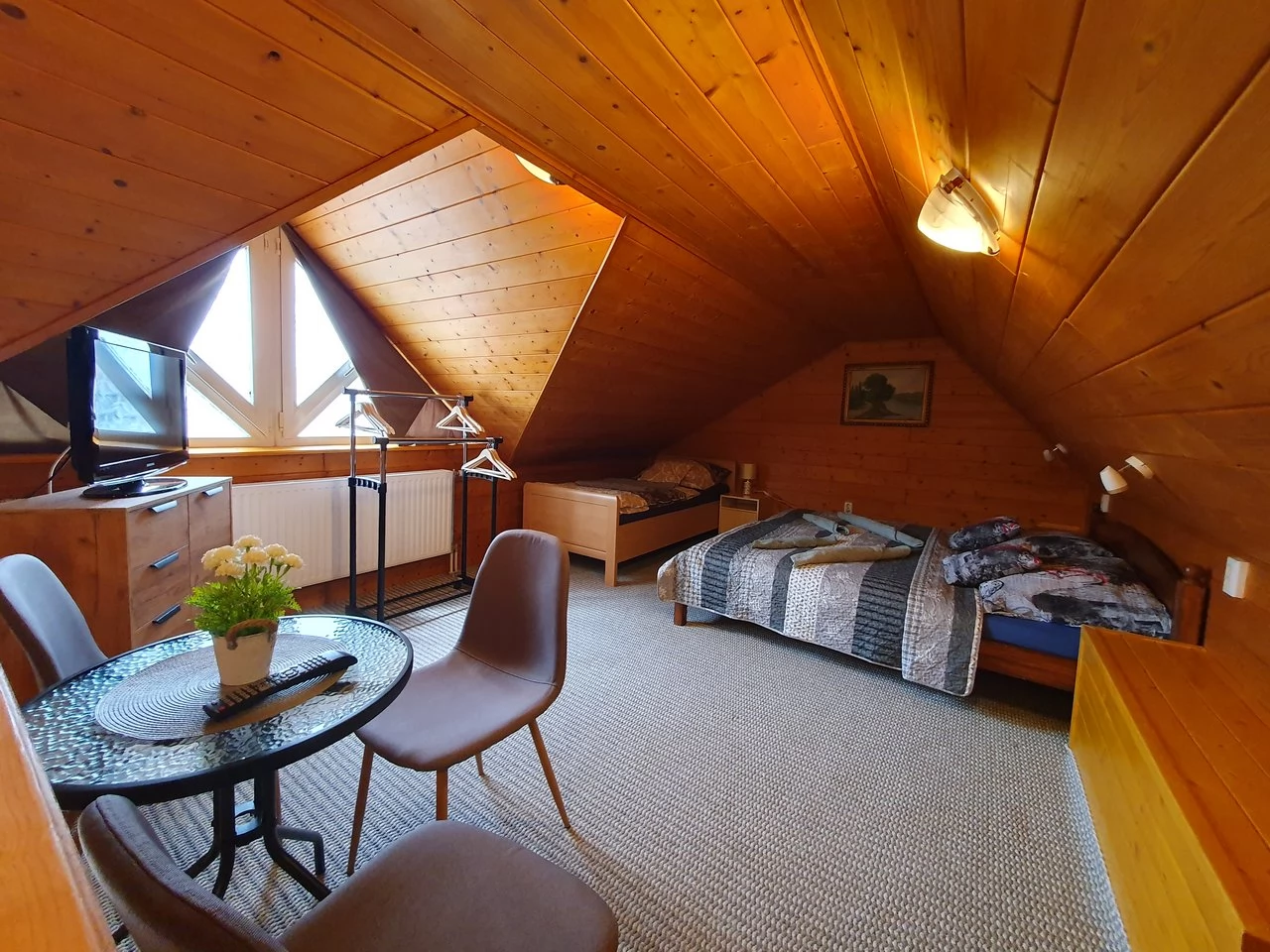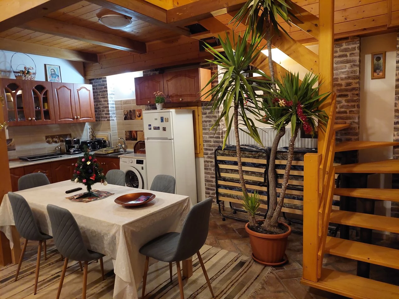 Camera de la parter are un pat dublu și un pat de o persoană. Cealaltă cameră este situată pe galerie, unde sunt prevăzute un pat dublu și un pat suplimentar. Bucătăria este spațioasă și frumos echipată cu o masă confortabilă. Baia are duș, iar toaleta este într-o cameră separată. La intrarea in unitatea rezidentiala, vizitatorul este intampinat de o atmosfera rustica.