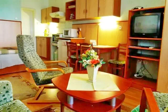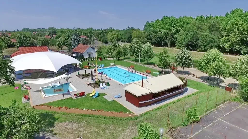 - Servicii masaj (2 000 Ft (~ 24.97 ron) - 5 000 Ft (~ 62.42 ron)/ocazie masaj suedez), Jacuzzi (4 000 Ft (~ 49.94 ron)/ocazie), Piscina cu apa termala (Exterior/Exterioara sezonier(a) 35-36 °C 100 cm), Piscina terapeutica (Exterior/Exterioara sezonier(a) 37-38 °C 90 cm), Bazin de inot (Exterior/Exterioara sezonier(a) 27-28 °C 120 cm), Piscina pentru copii (Exterior/Exterioara sezonier(a) 32-33 °C 60 cm)