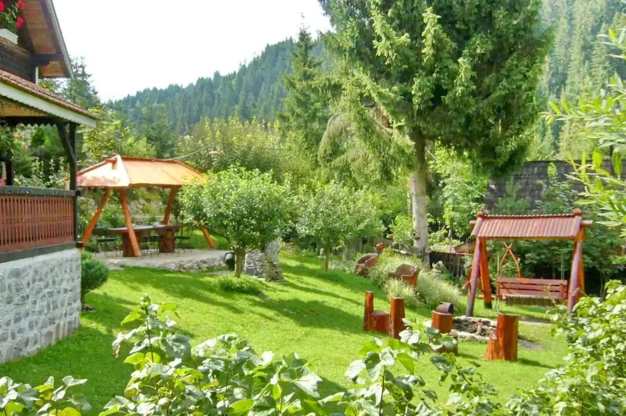 Cazare Revelion Lacu Roșu Cabana** | Wellness: Ciubăr; În pădure cu pârâu in curte, bucătărie, living, șemineu, terasă, grădină, foișor, grătar, loc de joacă, parcare | 4km Pârtia de schi Gheorgheni, 16km Lacul Roșu, 18km Cheile Bicazului