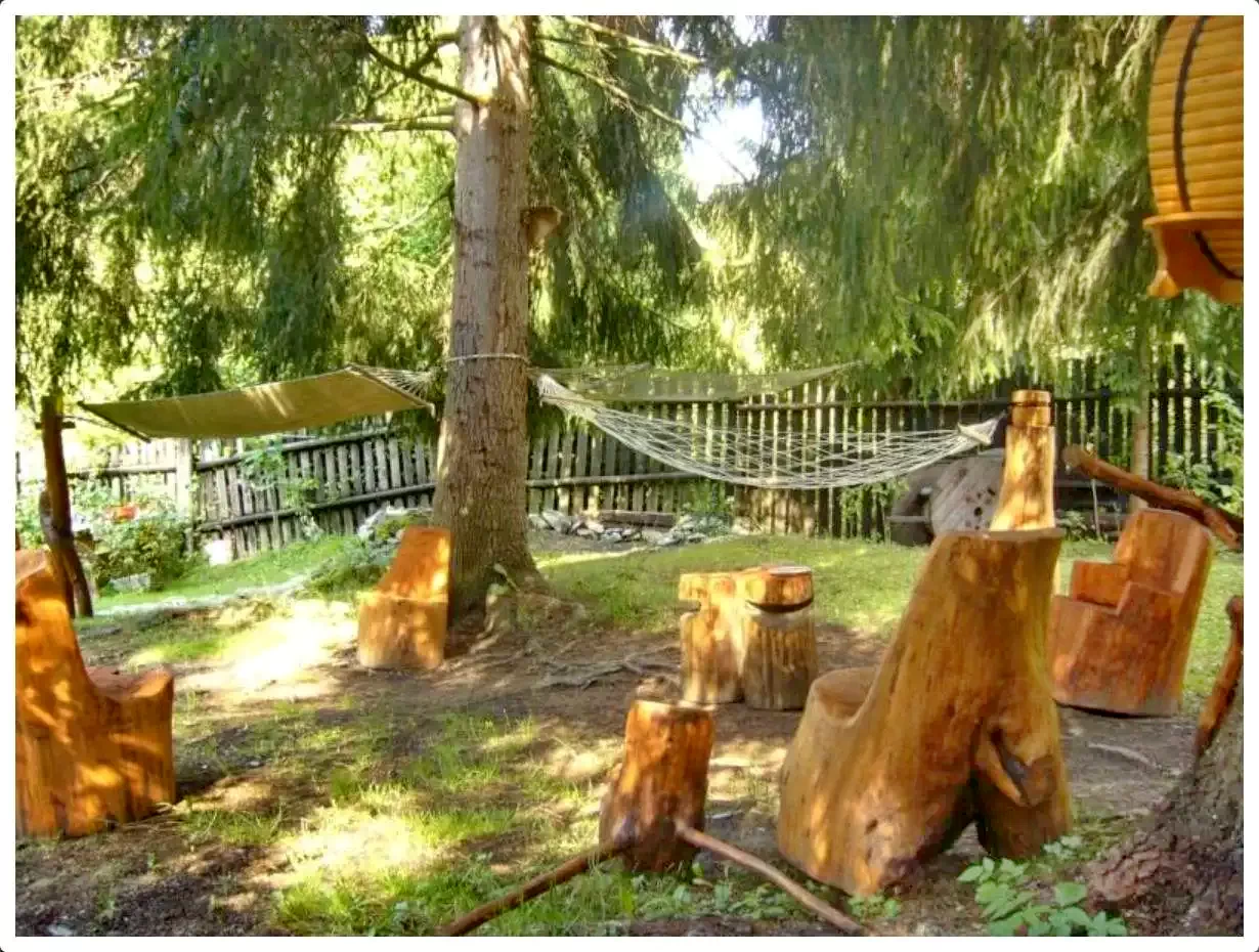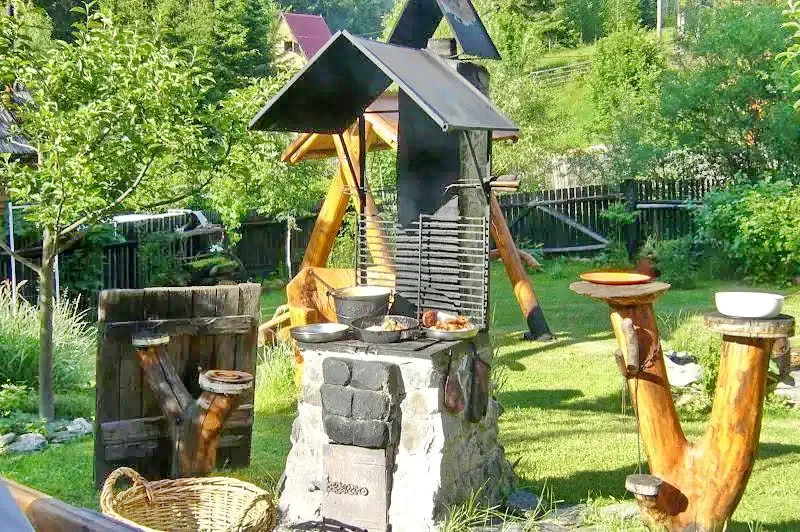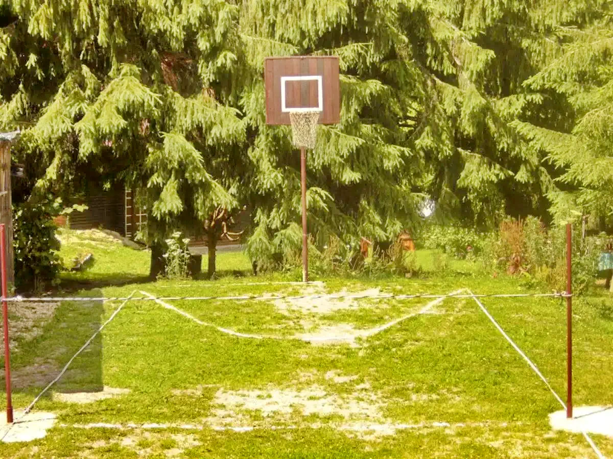 - În curte are un ciubar cu apa sarata, un cuptor pentru grătar sau pentru a fierbe o ciorbă, teren de joc, teren de sport, parau, foișor, parcare pentru mașini.