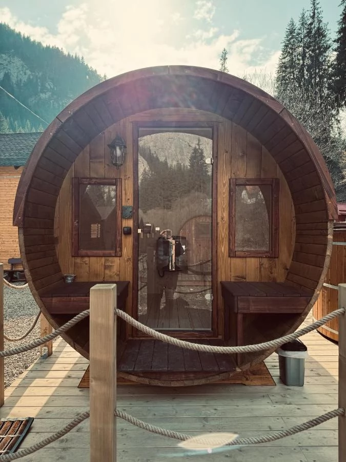 Cazare Revelion Lacu Roșu Cabane (cabane de lemn si casute tip butoi) | Wellness: ciubăr, saună; bucătărie, living, WIFI, terasă, grădina, grătar, foișor, parcare | 2 km Lacu Rosu, 3 km Cheile Bicazului, 32 km Lacul Bicaz, 37 km Partia de schi Ciumani