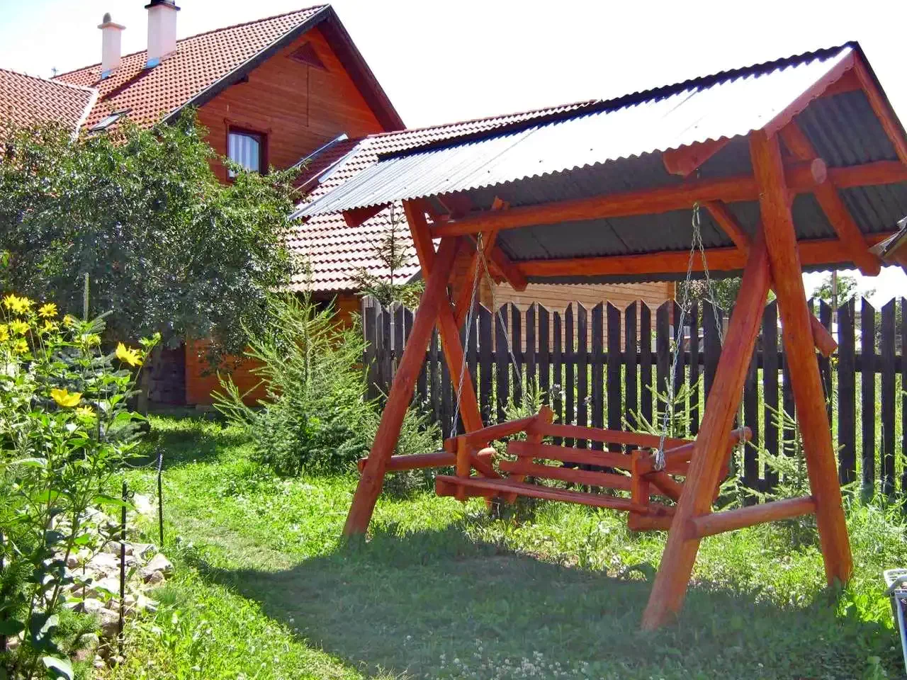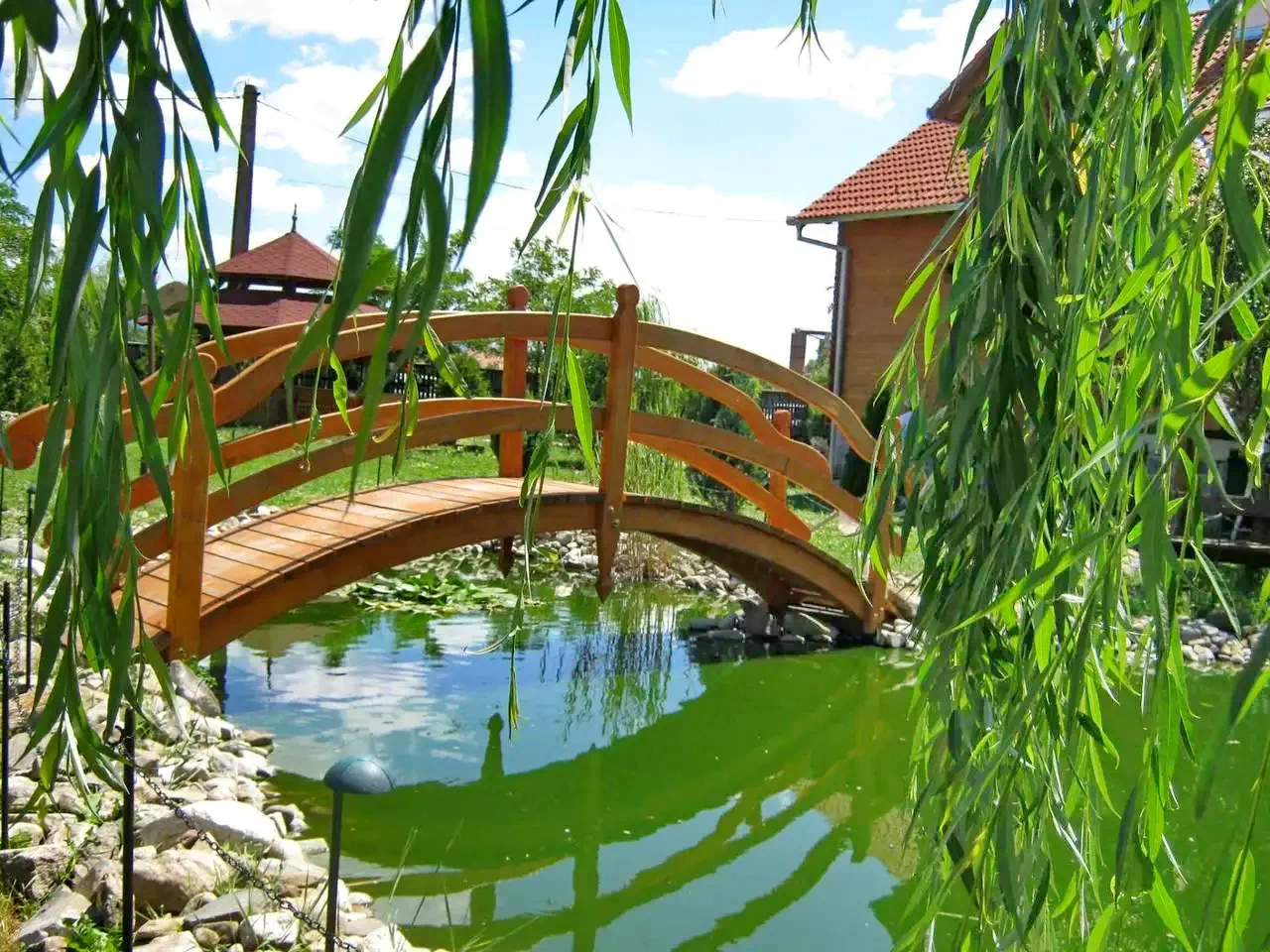 - Curtea sa amenajată, decorată cu flori, arbuști ornamentali și un iaz de grădină, are foișor, cuptor, facilitati de grătar și ceaun, un loc de joacă și o parcare spațioasă.
