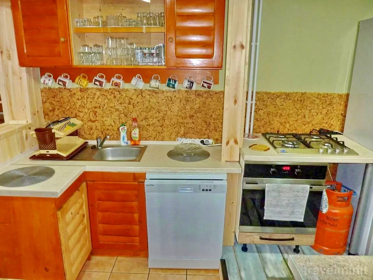 Echipamente de bucătărie: Aragaz pe gaz, mașină de spălat vase, frigider, cuptor cu microunde, prăjitor de pâine, filtru de cafea, fierbător de ceai, vase, tacâmuri.
