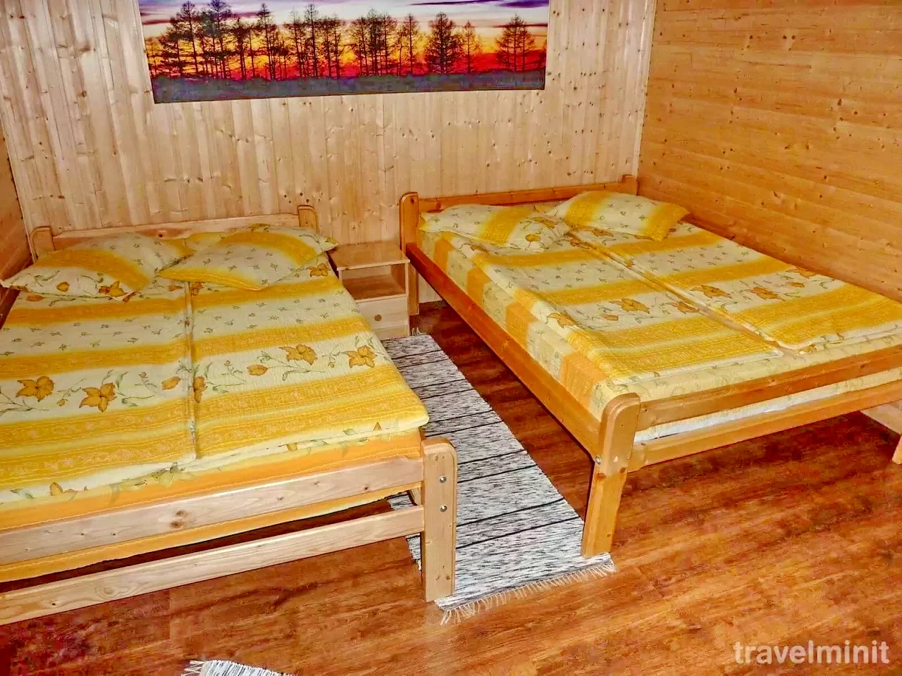 2 camere: 1 pat dublu + 1 pat single (3 persoane fiecare) Cabana dispune de cinci grupuri sanitare și lenjerie de pat de calitate, pentru confort maxim.