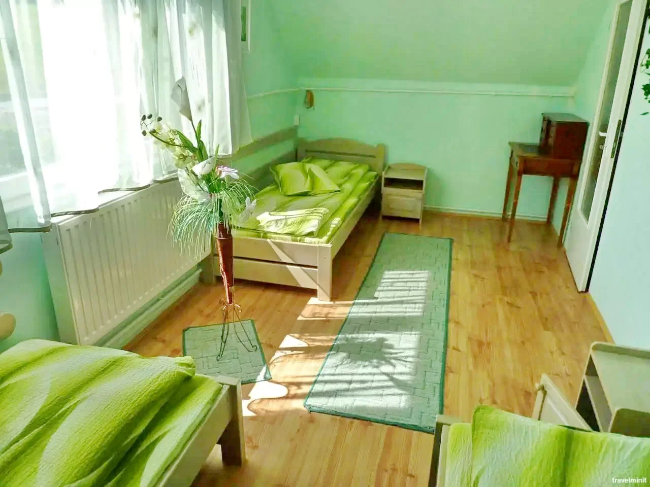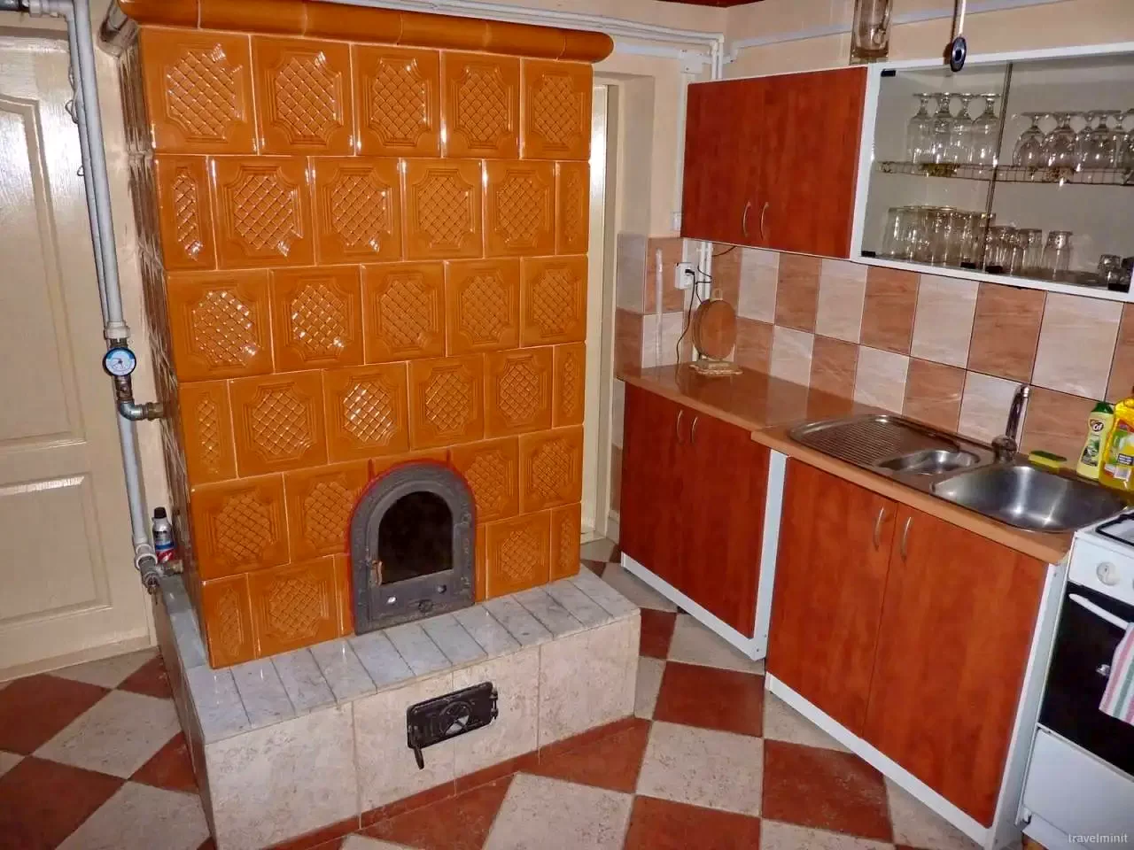 - La etaj sunt trei camere care oferă odihnă confortabilă. Încălzirea este asigurată prin sobă de teracotă și încălzire centrală, iar apa caldă este furnizată de un boiler pe lemne, garantând confort în orice anotimp.