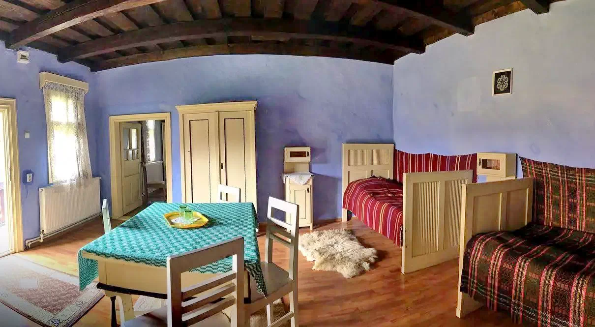 - Casa are trei camere mobilate tradițional cu intrări separate.