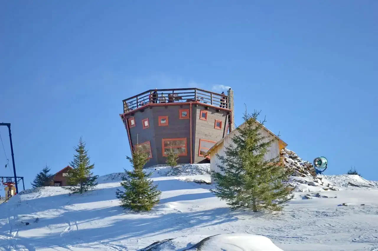 - Terasă panoramică situată pe vârful muntelui, lângă cabană