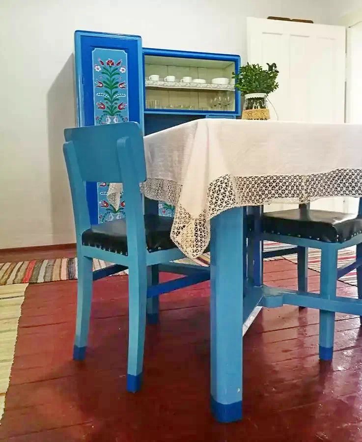- Atmosfera bucătăriei și sufrageriei este tradițională, insa echipamentul său este complet și modern (plită electrică, cuptor, frigider, ceainic, filtru de cafea, chiuvetă, veselă, ustensile și accesorii de bucătărie, ceai, cafea);