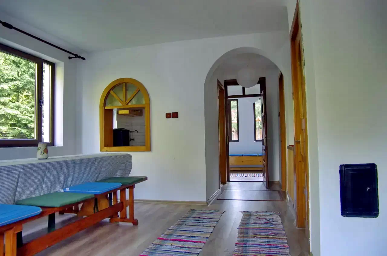 - Oferă cazare decentă pentru 15 persoane cu un total de 5 dormitoare, 2 băi, 4 toalete și o zonă comună.