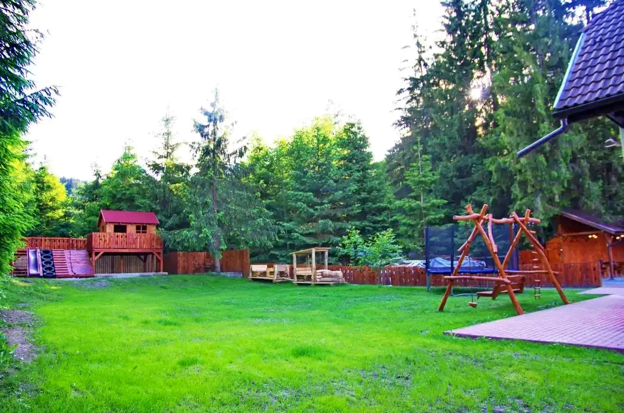 - Oferă toate posibilitățile de divertisment la aer liber: curte de 1500 m2, pădure, pârâu, aer curat, foișoare, facilități de grătar si ceaun, curte evenimente, loc de joacă, precum si parcare gratuita.