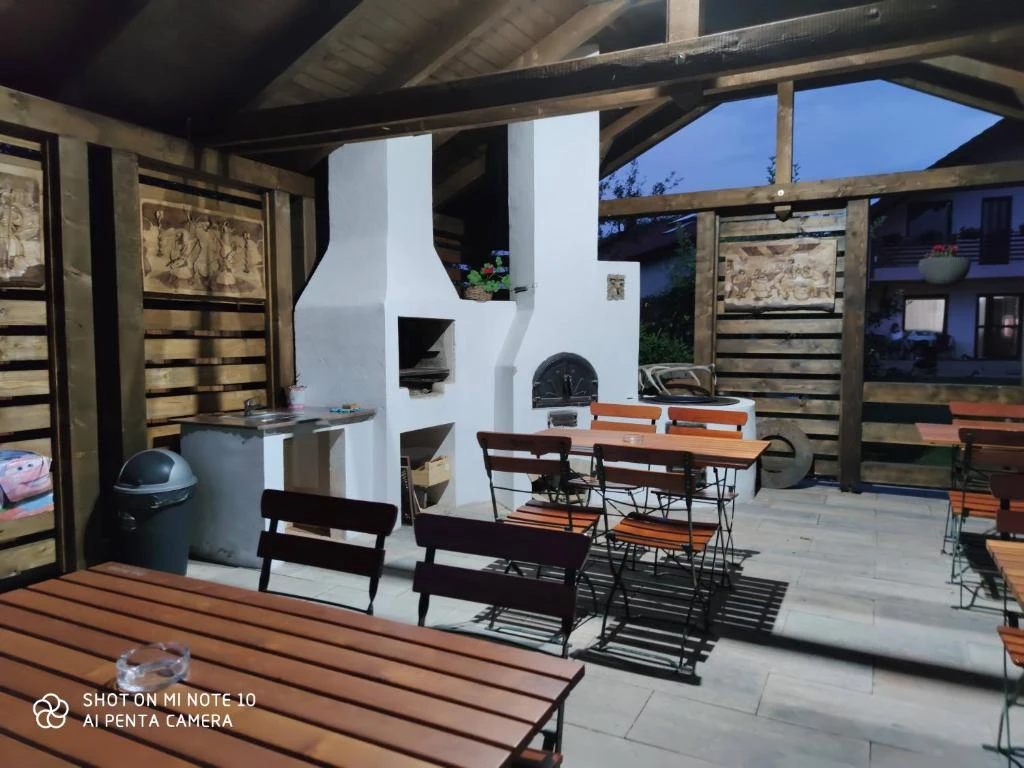 - Pensiunea dispune de curte spațioasa, închisa, cu o zona de iarba pentru copii, o terasa pentru petreceri in gradina, grătar, ceaun si cuptor, precum si de parcare închisa.