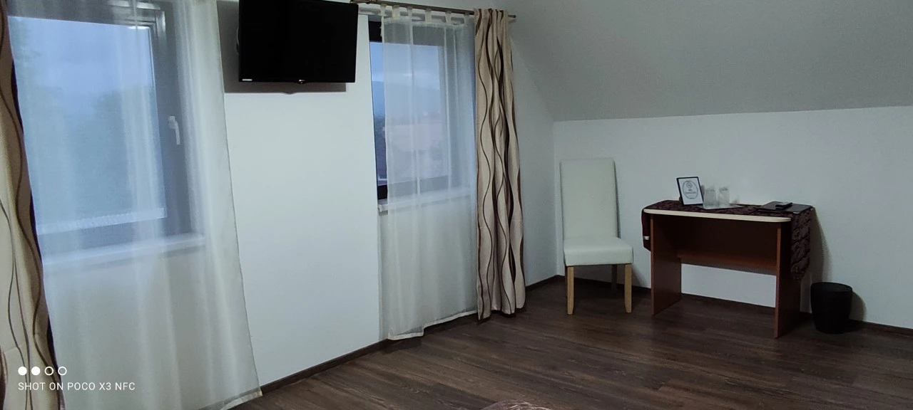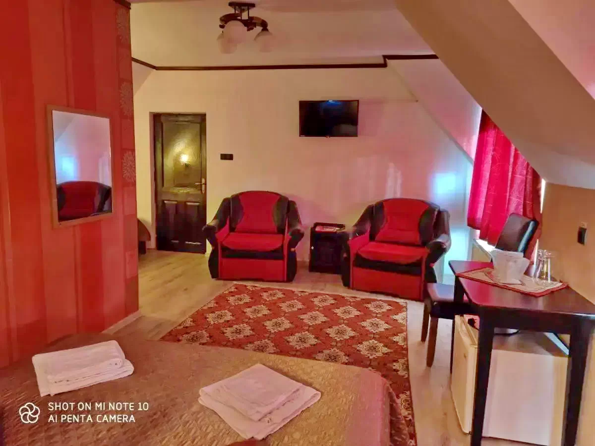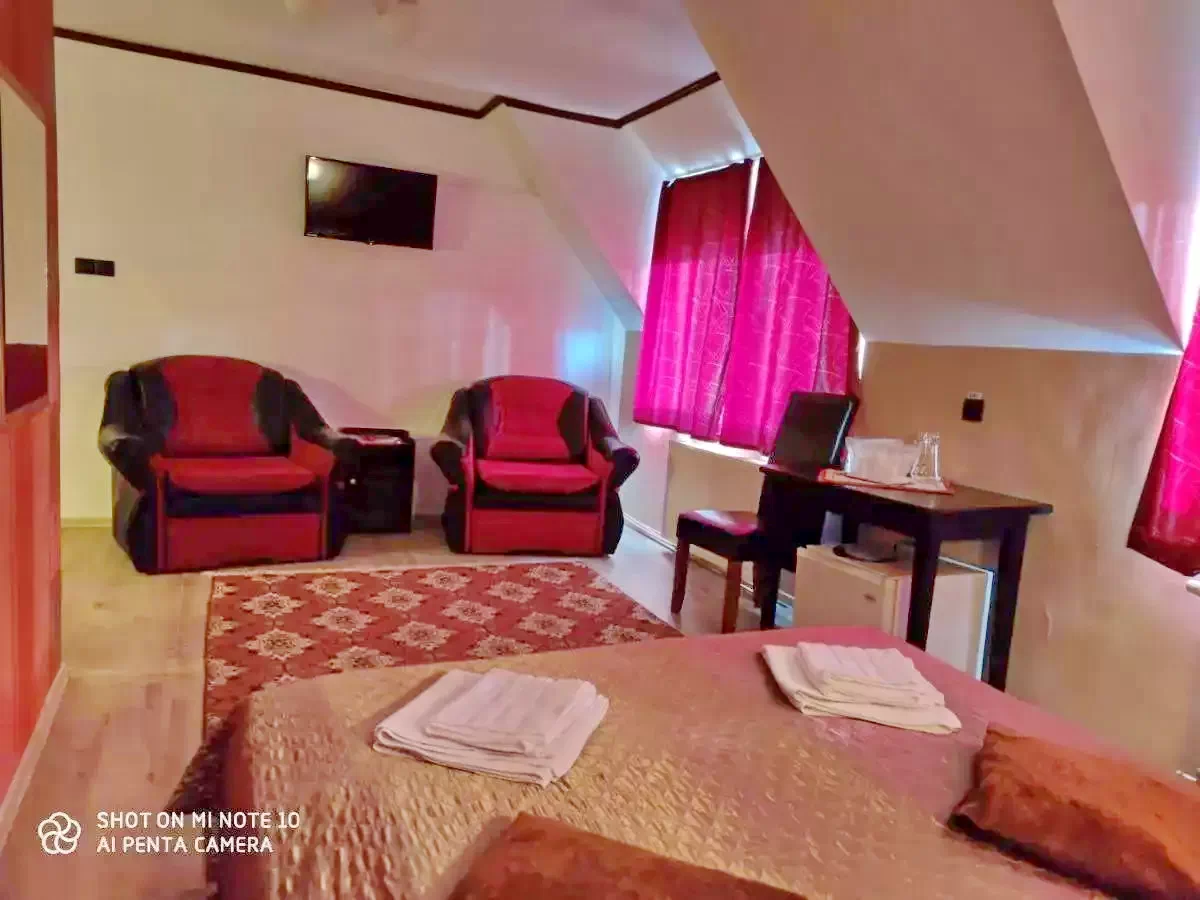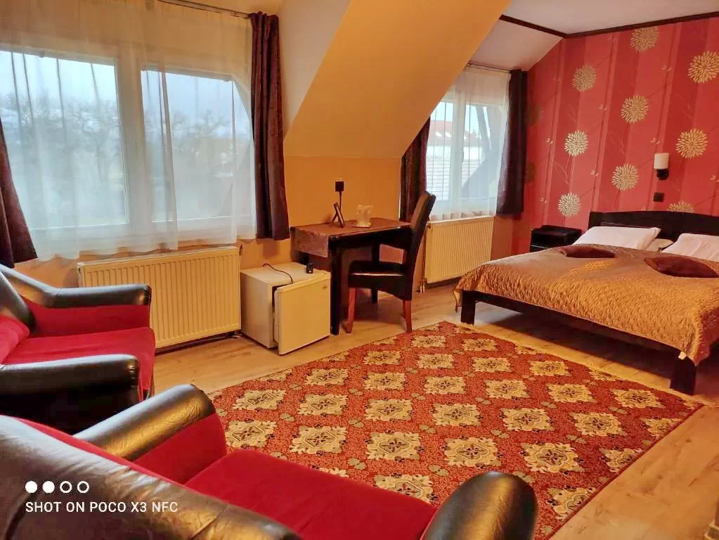 - Camerele confortabile, mobilate cu gust, sunt dotate cu mini-frigider, TV color cu ecran plat, cablu TV, WIFI gratuit, încălzire centrala. Există si seif la recepția pensiunii.