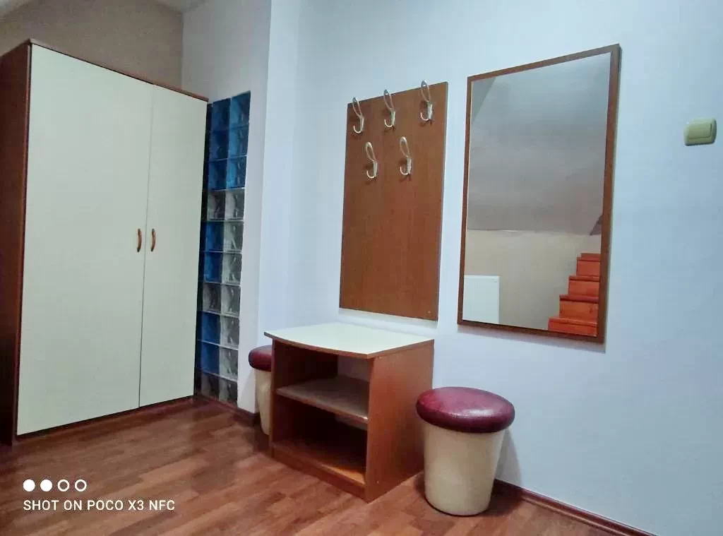 - Dispune de o bucătărie complet utilată și o sală de mese spațioasă la mezanin, unde se poate discuta și lua masa într-un cadru plăcut.