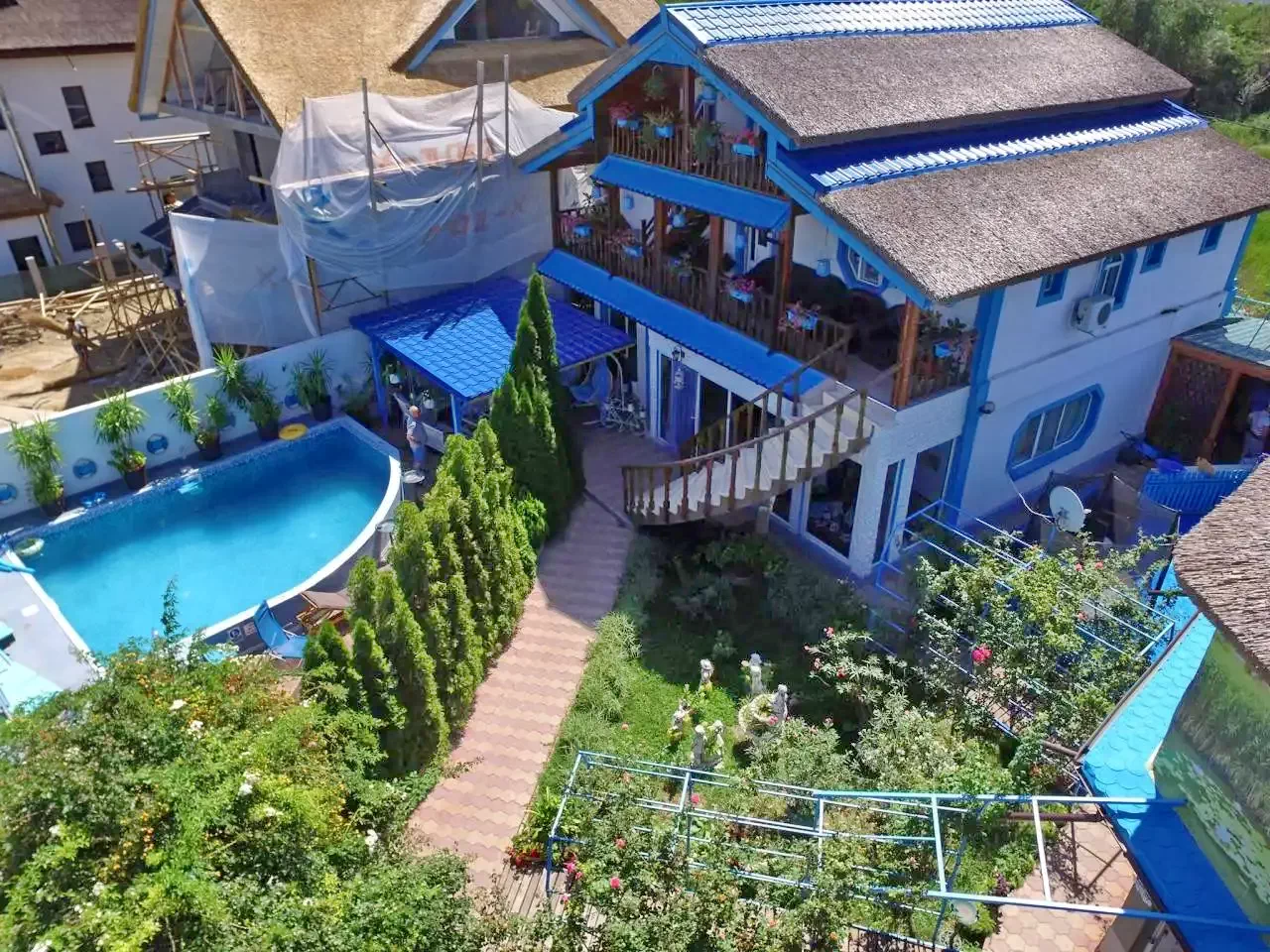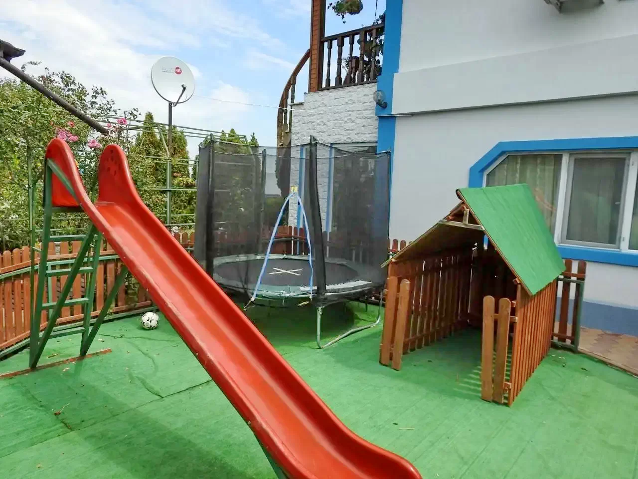 - Casa va asteapta cu o gradina frumoasa, amenajata, o piscina incalzita, salon de mese, foisor spatios, terasa acoperita si spatiu de joaca pentru copii.