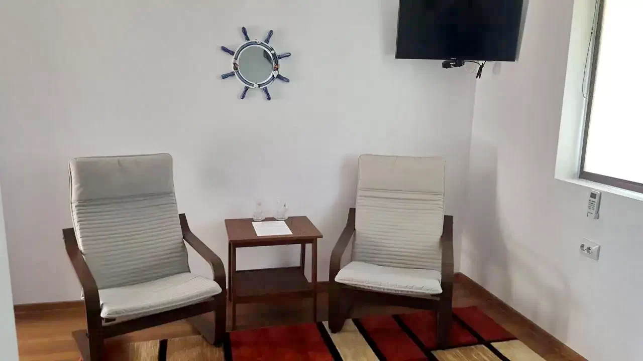 Camerele sunt dotata cu aer conditionat, tv satelit si baie proprie, exceptie facand doua camere care au o singura baie, formand un apartament.