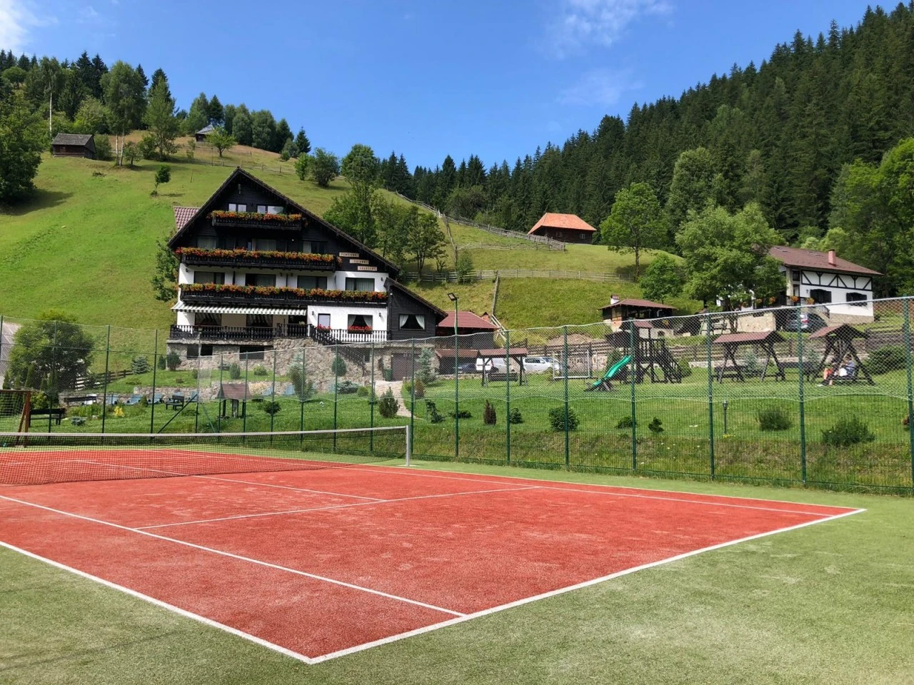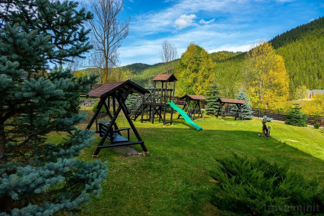 - Terenul de joacă cu leagăne, balansoare și tobogan,