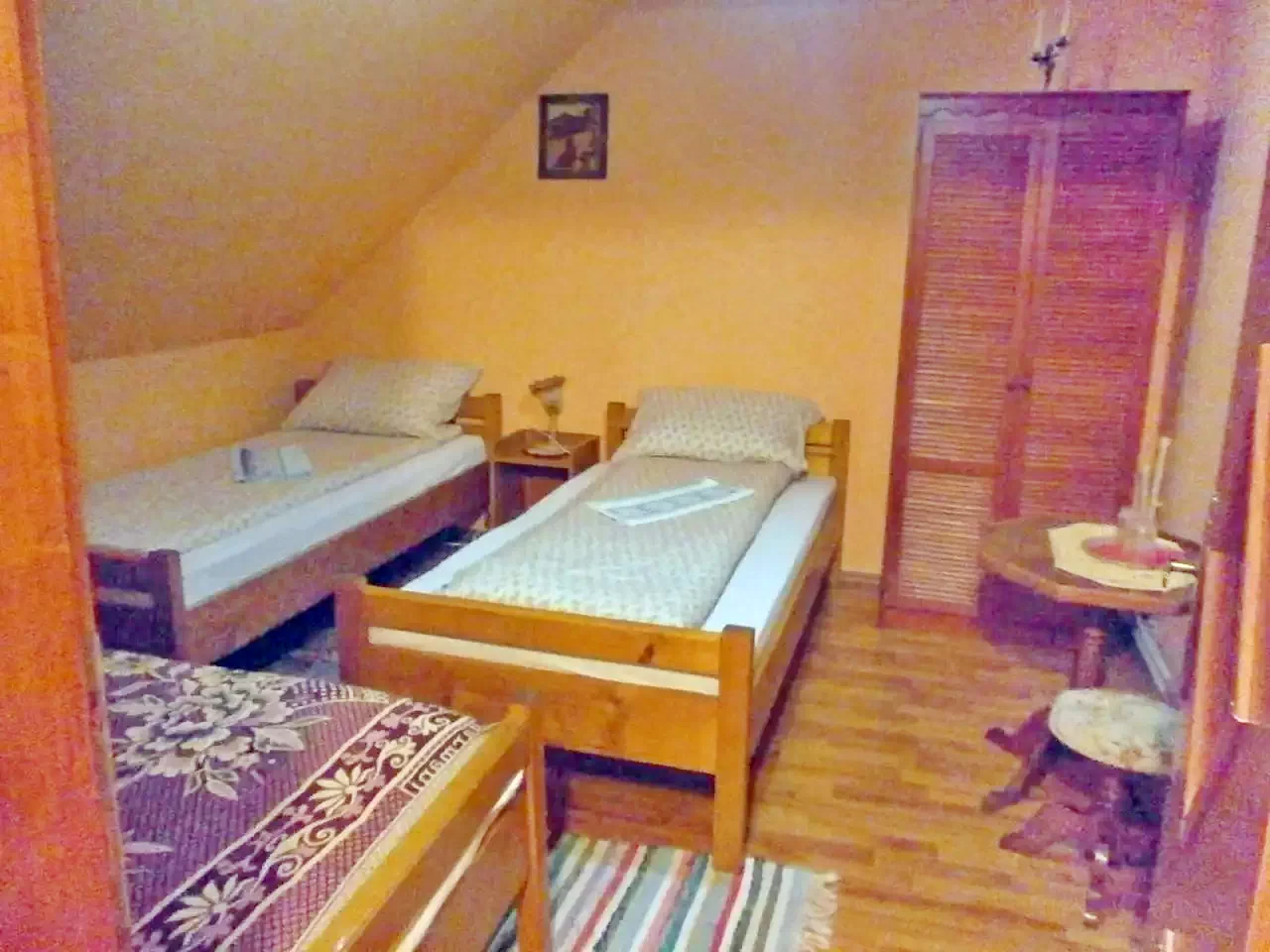- 2 camere mari (prima cu 3 paturi de o persoană + o canapea extensibilă dublă, a doua cu un pat matrimonial, 2 paturi de o persoană) pentru maxim 9 persoane