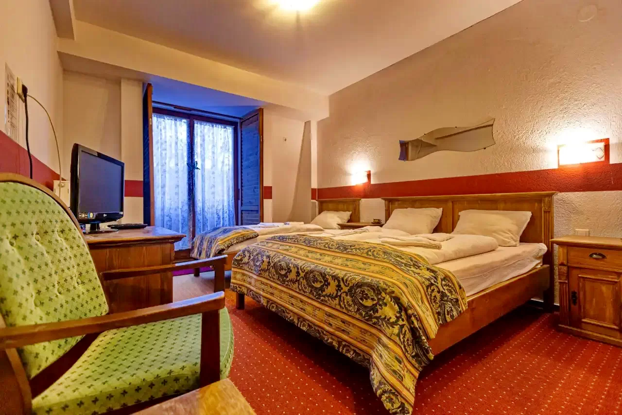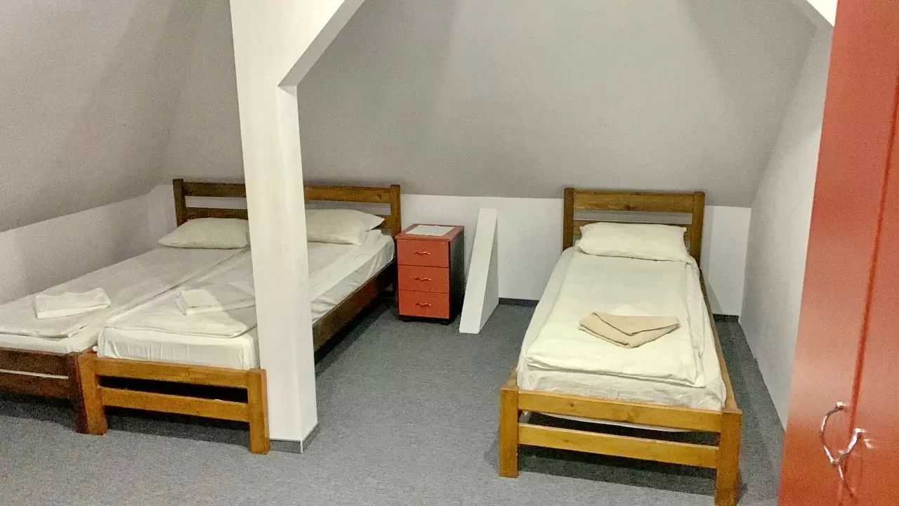 - 2 camere triple (fiecare cu 1 pat dublu și 1 pat simplu)