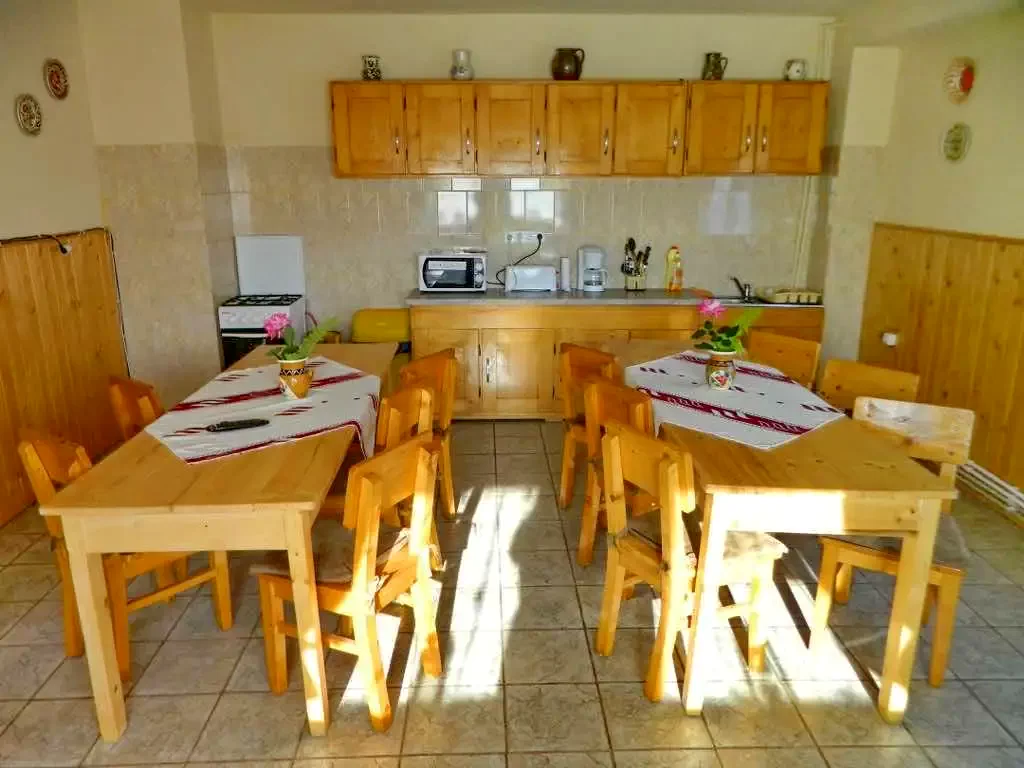 - Pensiunea are o sală de mese spațioasă și o bucătărie complet utilată, oferind posibilitatea de auto-gospodărire.