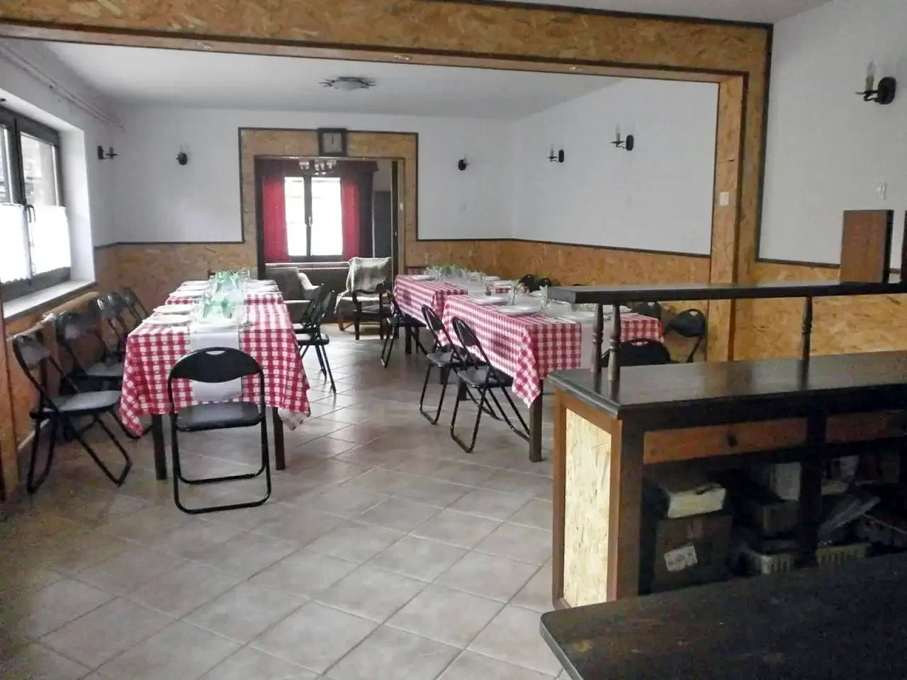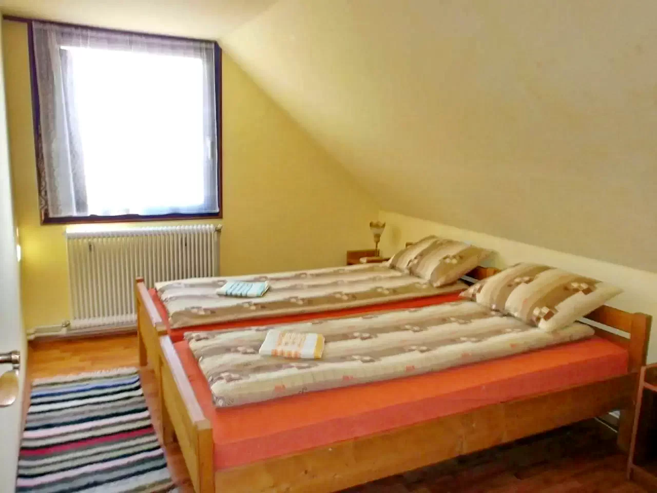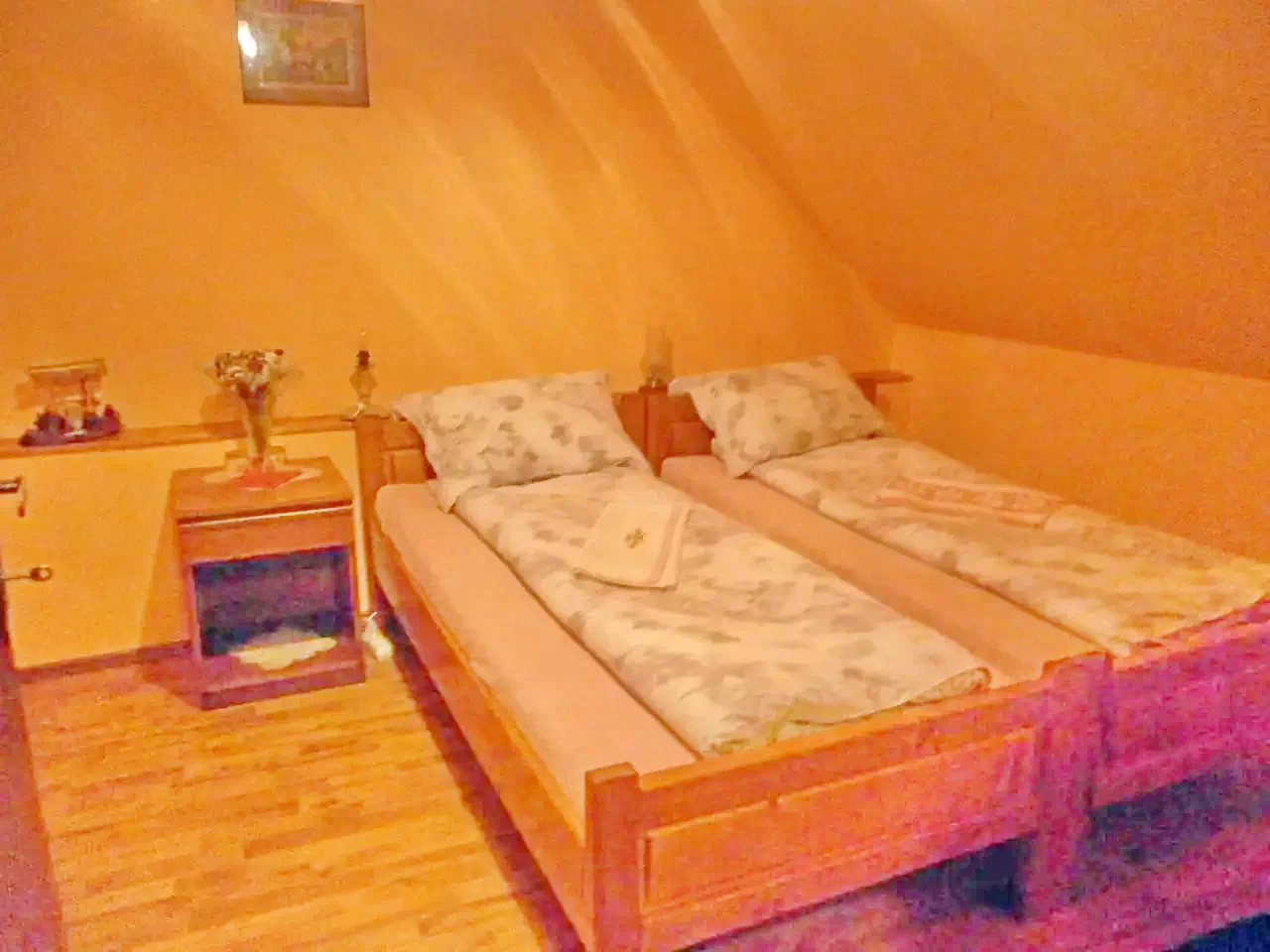- 2 camere mari (prima cu 3 paturi de o persoană + o canapea extensibilă dublă, a doua cu un pat matrimonial, 2 paturi de o persoană) pentru maxim 9 persoane