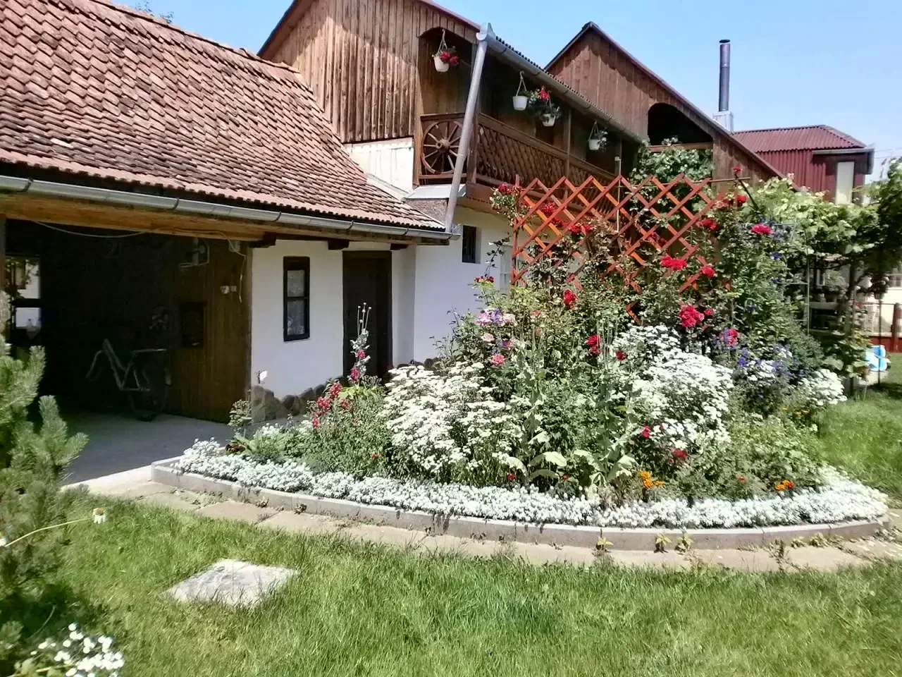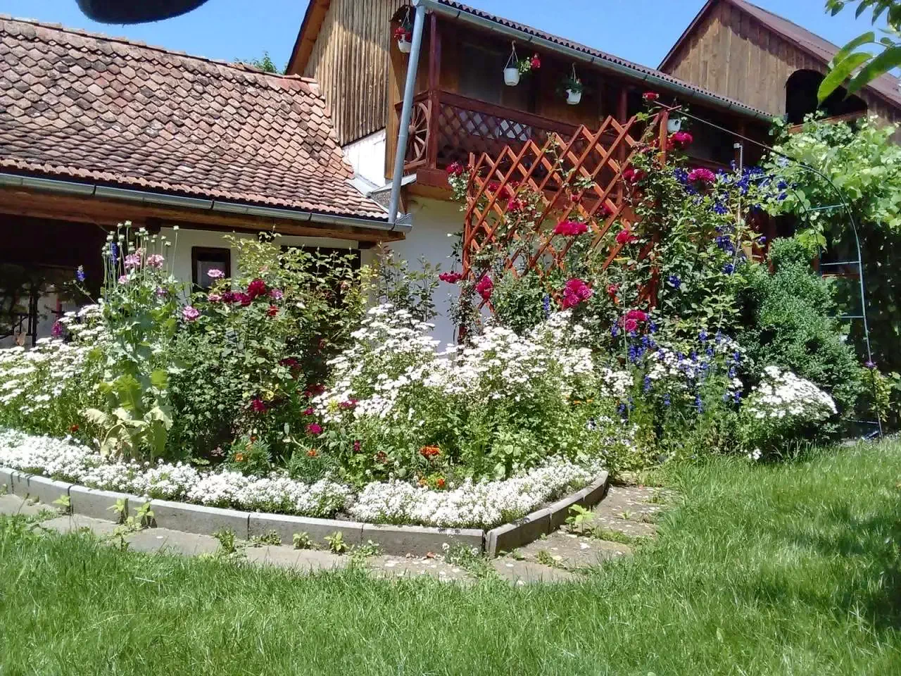 - Curtea spațioasă și închisă, amenajată cu grădină de pomi fructiferi și legume, este de ani de zile un loc de recreere activă pentru oaspeți.