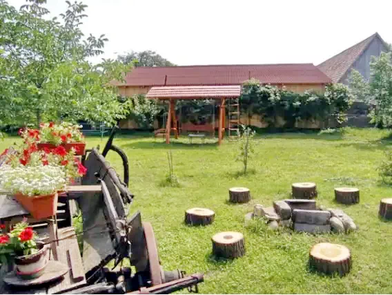 - Curtea, cu pomii săi fructiferi bătrâni și grădina plină de flori, oferă o relaxare plăcută, fiind în același timp un loc ideal și pentru turiștii care doresc să campeze.