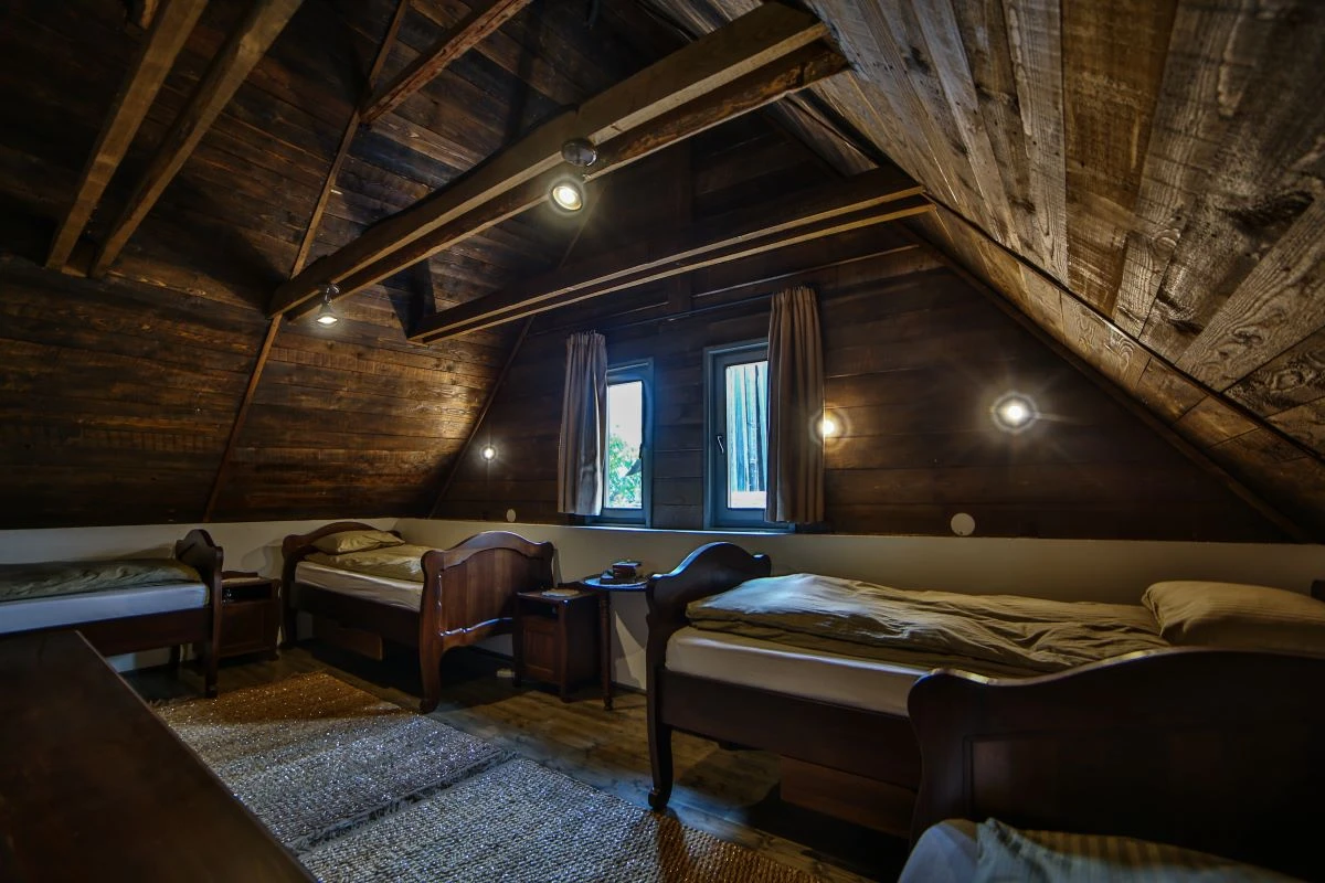 - Hambar transformat în spațiu de cazare: 2 camere de patru locuri, fiecare cu baie proprie.