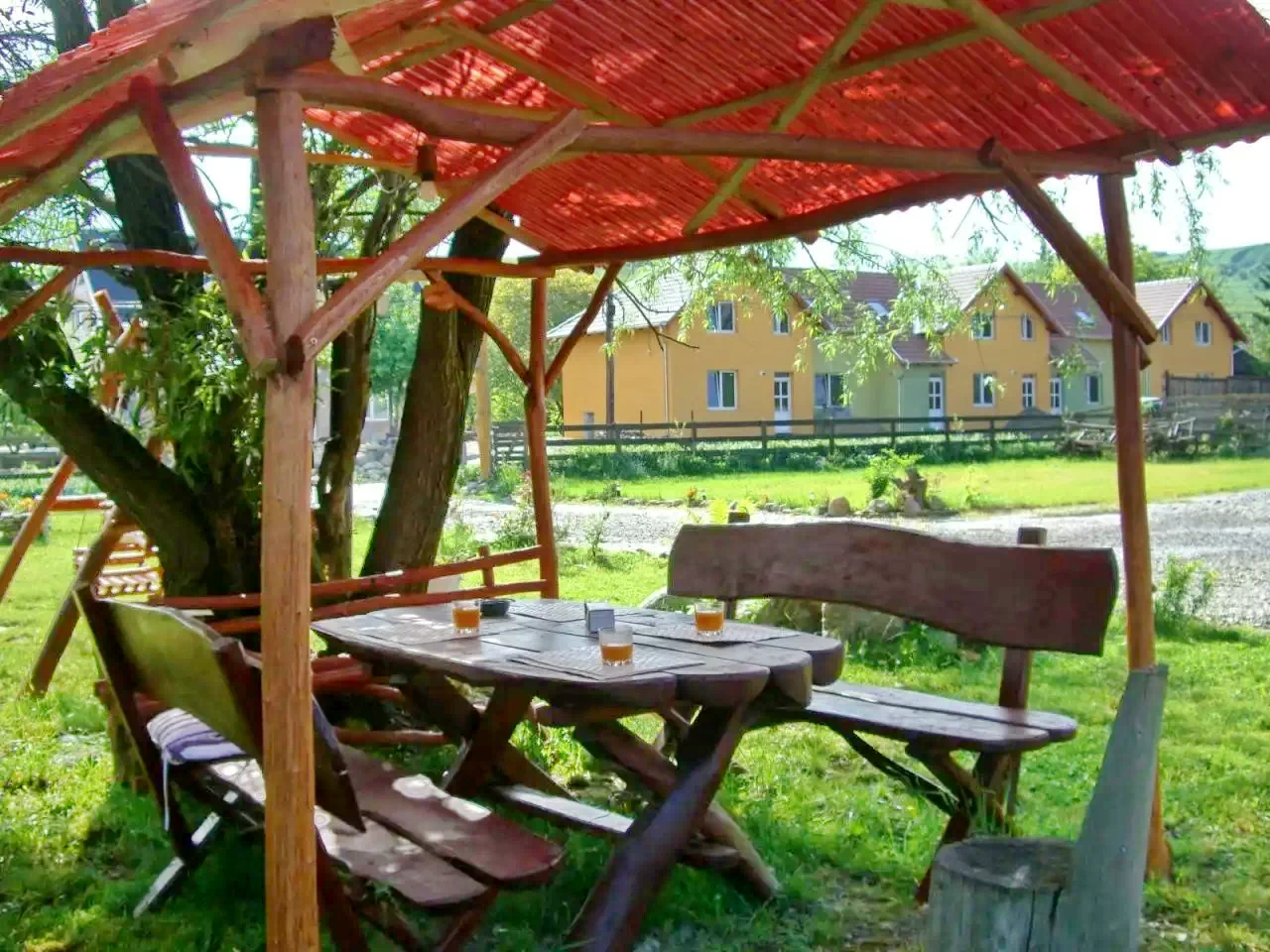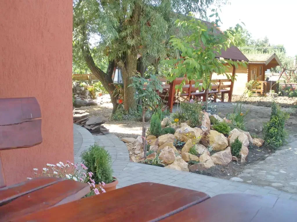 - În curte există o fântână arteziană, un leagăn, mobilier de grădină și o căsuță mică din lemn pentru două persoane.