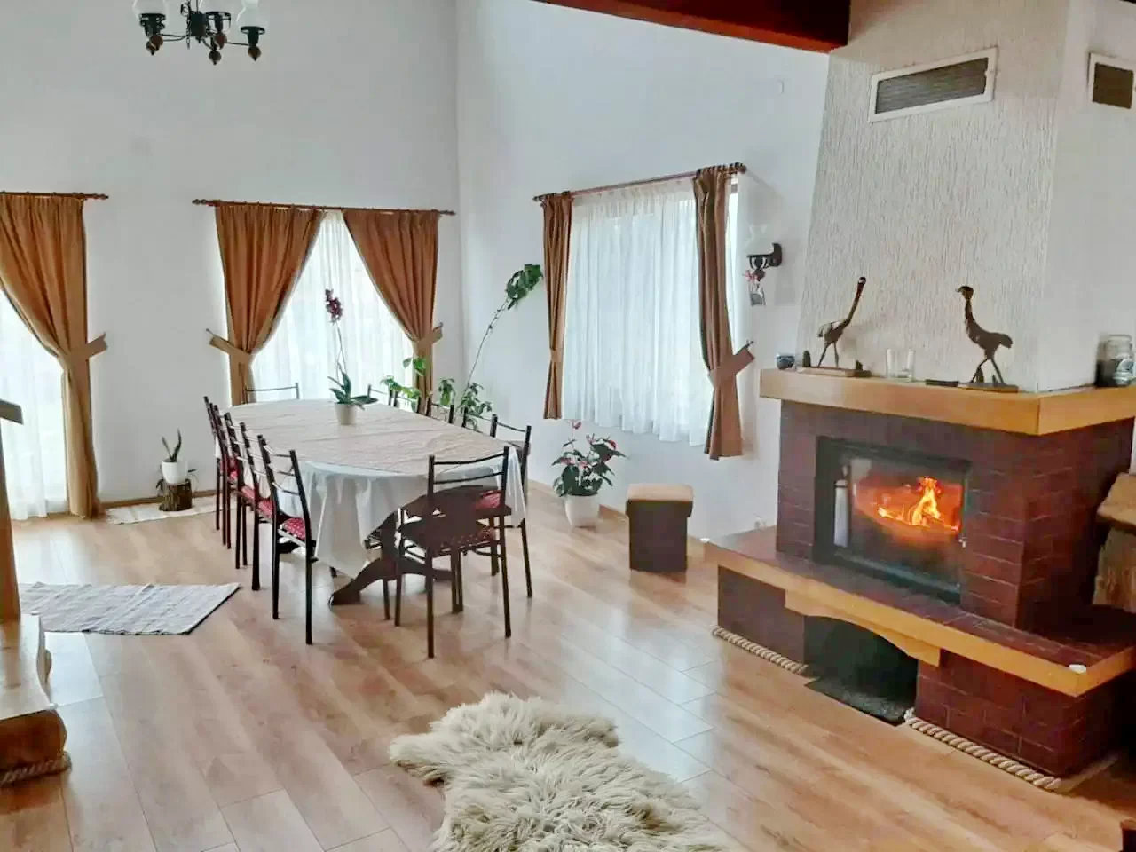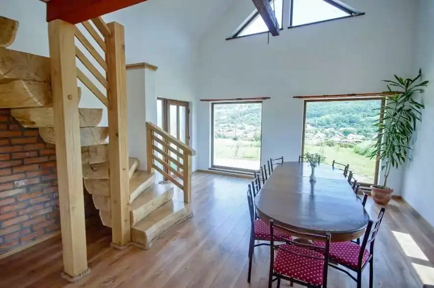 - Pensiunea dispune de o bucătărie pentru oaspeți, living spațios și elegant și o terasă mare, de unde se poate admira o priveliște minunată asupra munților din jur.