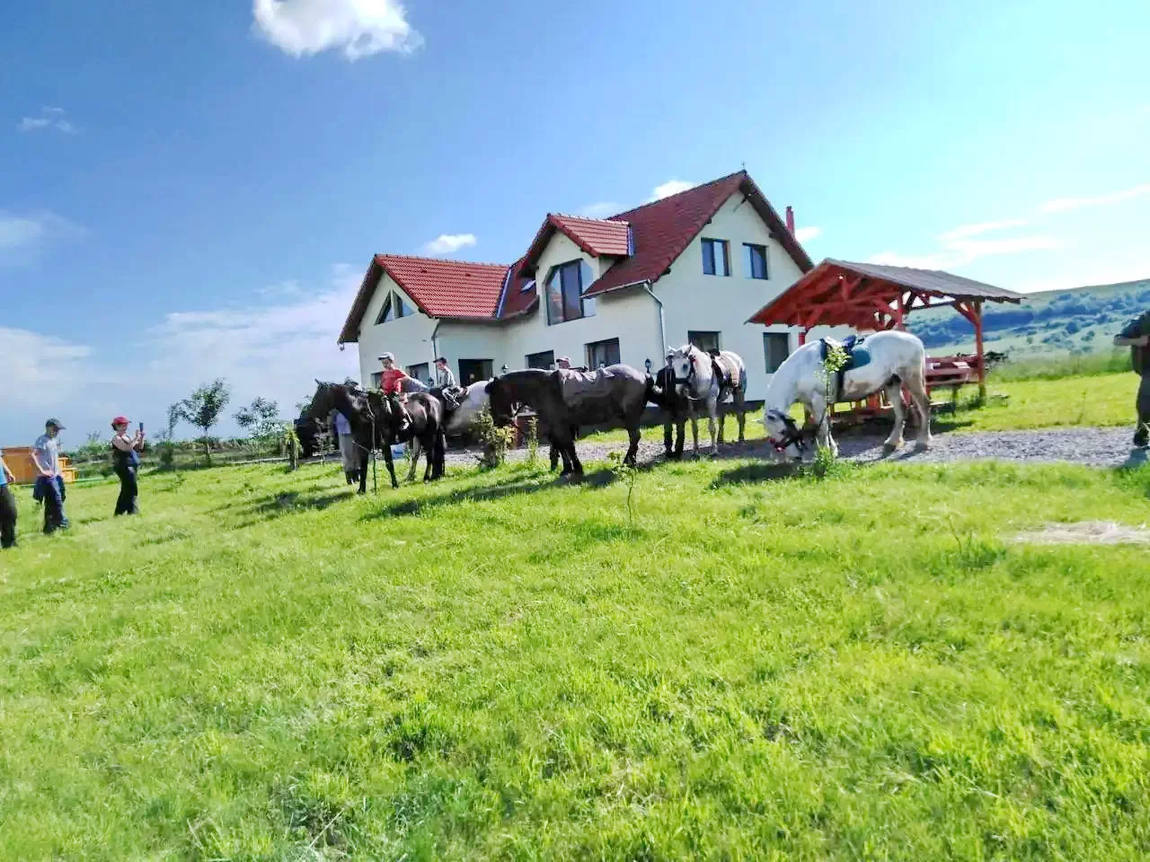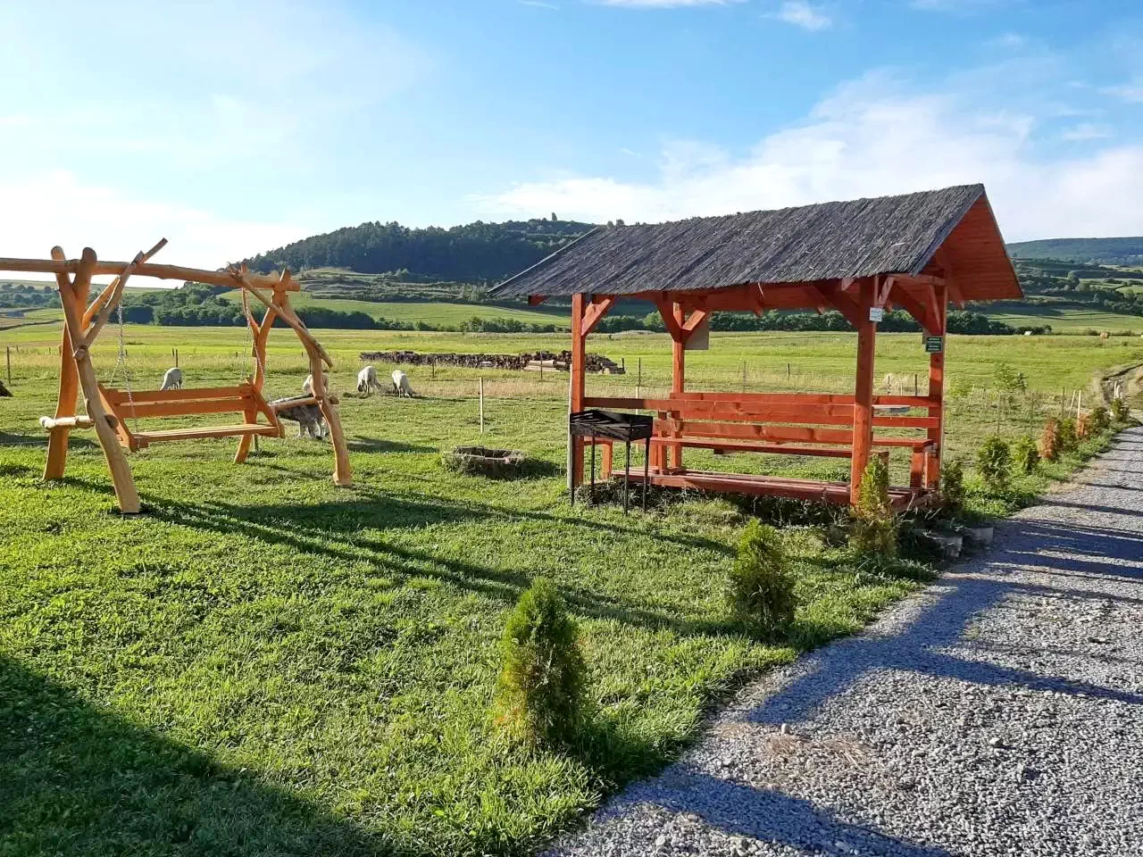 - Oaspeții pot beneficia de un spațiu verde imens, foișor, posibilități de grătar și gătit în ceaun, loc de joacă pentru copii și programe în aer liber.