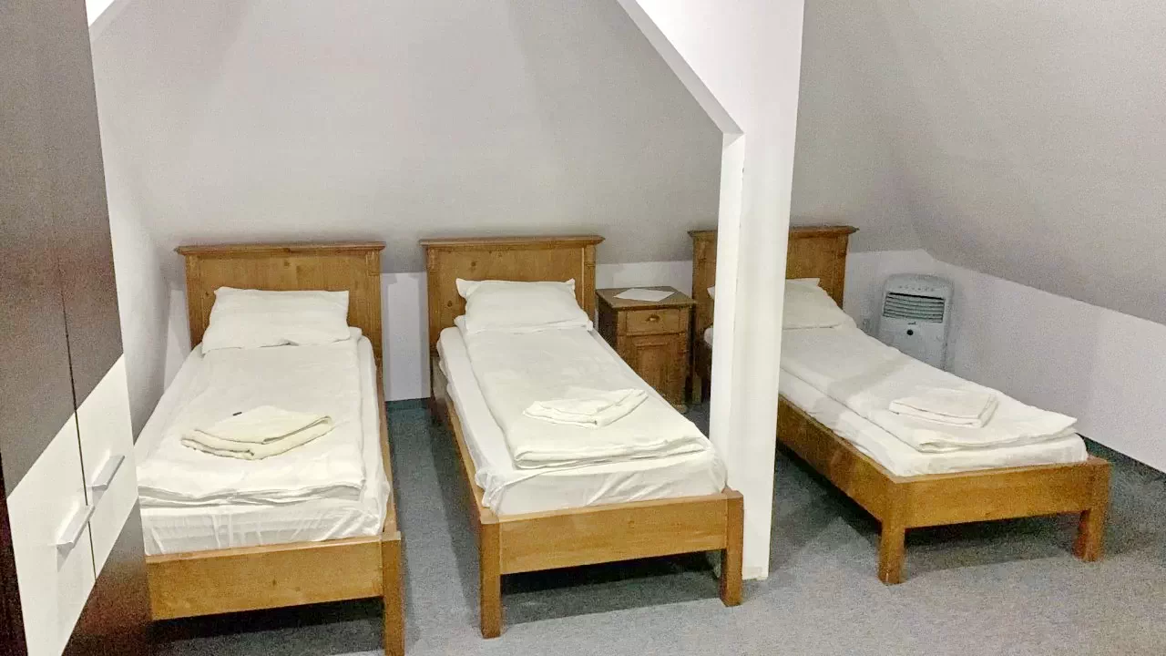- 2 camere triple (fiecare cu 1 pat dublu și 1 pat simplu)
