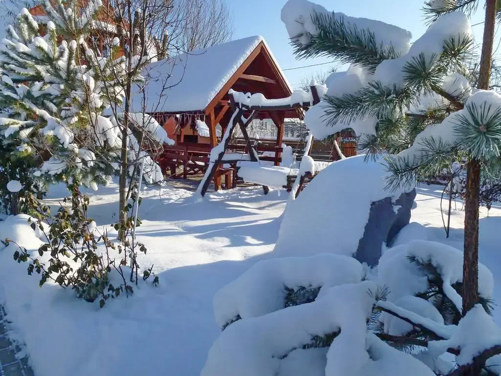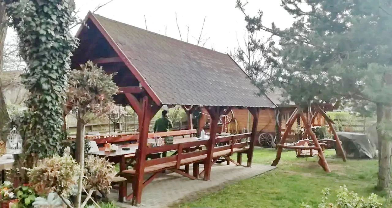 - În curte există o fântână arteziană, un leagăn, mobilier de grădină și o căsuță mică din lemn pentru două persoane.
